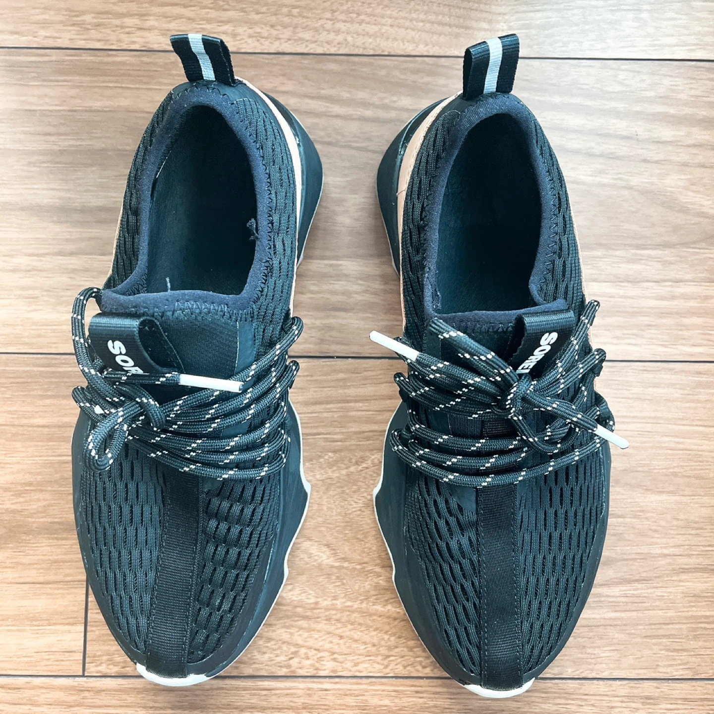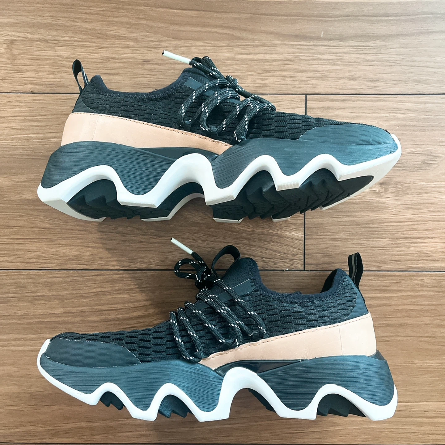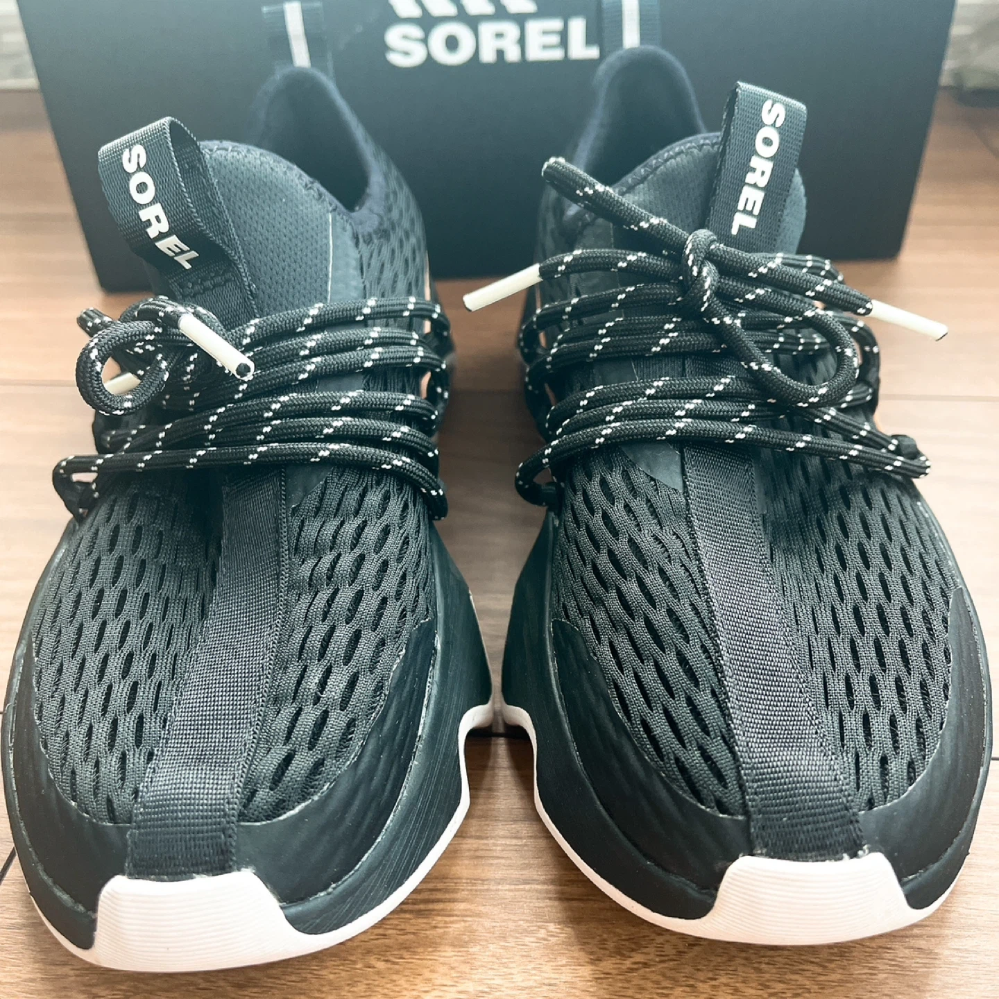 SOREL ソレル NL 4953 レディース スニーカー キネティックインパクト2 レース 厚底 22.5cm 箱、取扱説明書付 完売品のブラックカラー 1回短時間だけ試し履きしました。目立つ傷汚れなしの使用回数少ない美品です(*˙˘˙*)ஐ ソレルの定番人気キネティックコレクションからアイコニックなソールが魅力のスニーカー ソールのボリューム感に反しアッパーは通気性の良いメッシュ素材で軽やかな印象 に 植物由来の素材ブルームを配合したサステナブルで機能的なミッドソールは、軽量な上に弾むような弾力性を備えた独自開発のライブリーフォームを使用 ・アッパー:合成繊維 ・ボトム:合成底 合成ゴム ・ヒール高:約4.9cm ・重量:約250g