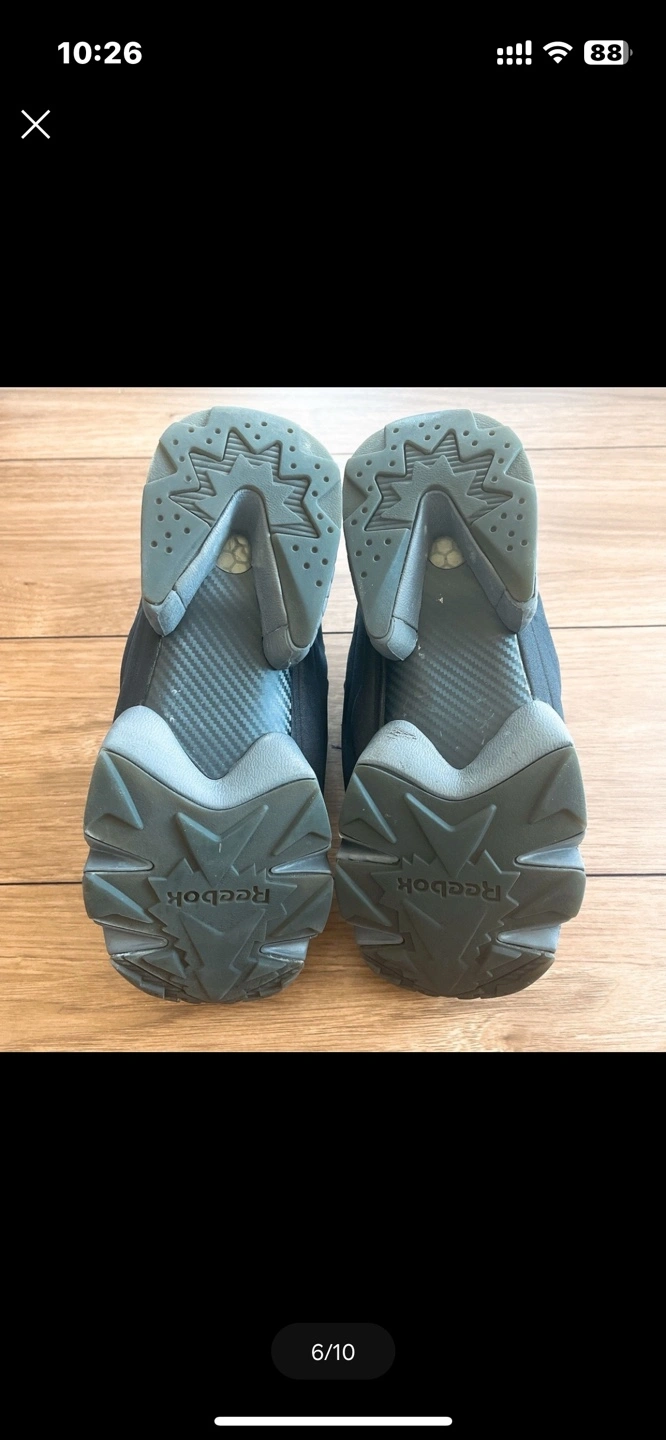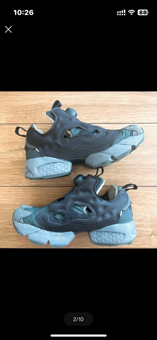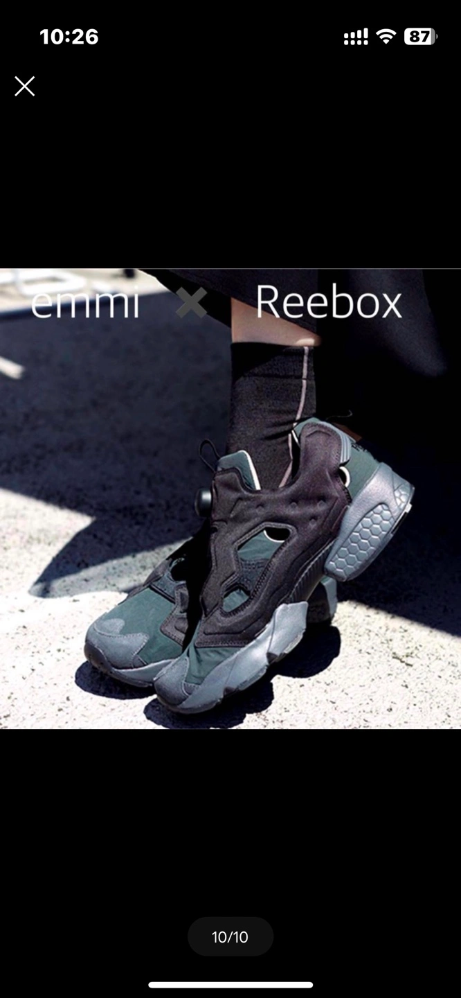 お値下しました♪ REEBOK × emmi - INSTAPUMP FURY OG インスタ ポンプフューリー 別注 リーボック × エミ コラボ 23cm 箱、取扱説明書付 軽量で履き心地が良く空気を注入するポンプチェンバーをアッパーに導入することで、シューレースがなくても足にフィットさせることができる「ザ ポンプ テクノロジー」。また、ハニカム構造の衝撃吸収をもたらすHEXALITEも搭載。 日本発のブランド"emmi"とのコラボレーションモデルの限定品。マテリアルの違うオールブラックのアッパーに半透明のクリアソールを採用しています。 #リーボック #レアスニーカー #ポンプフューリー23 #おしゃれスニーカー