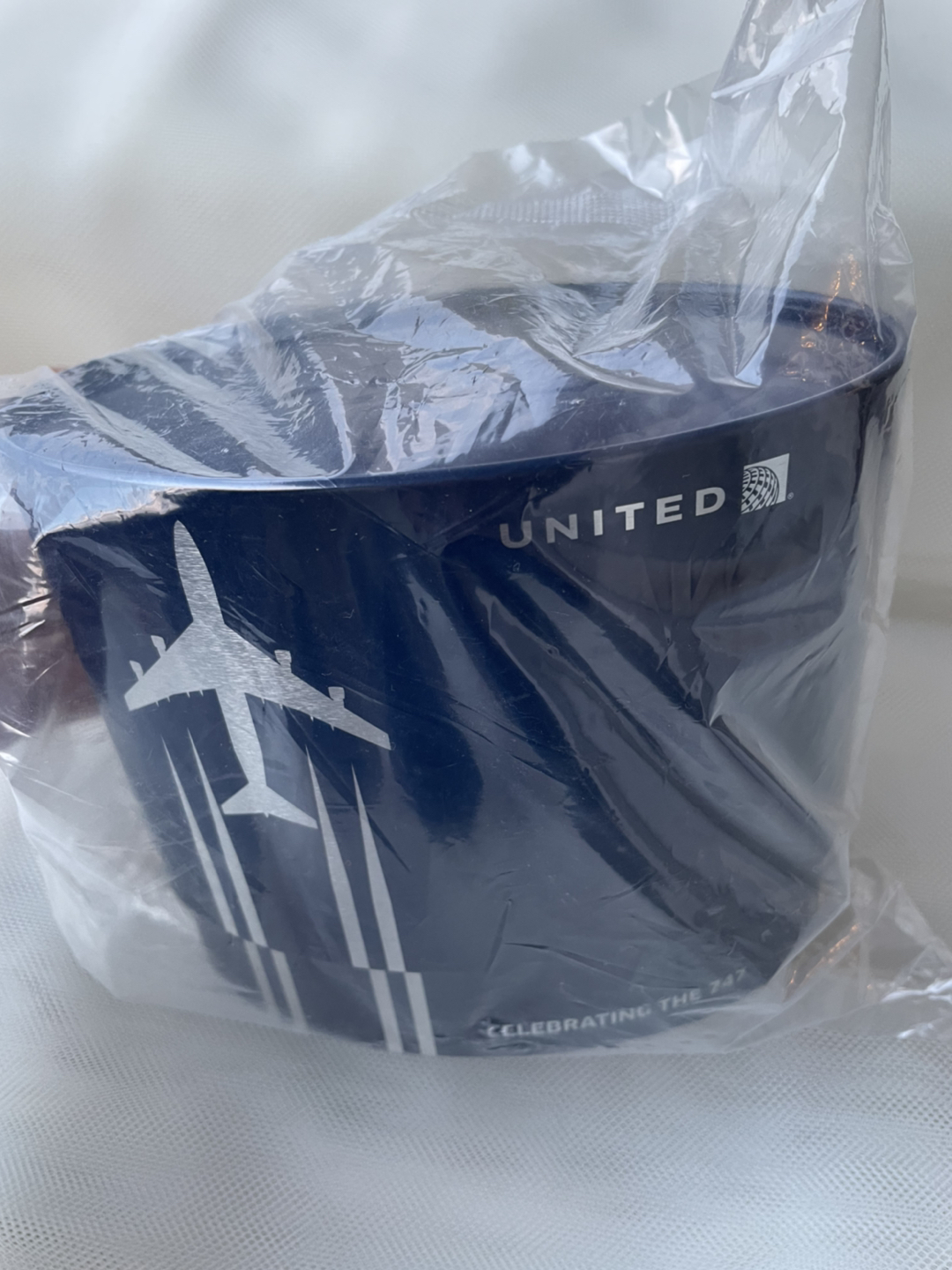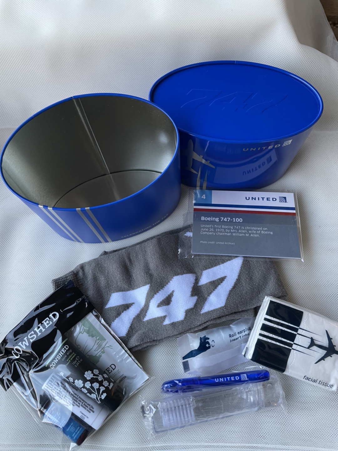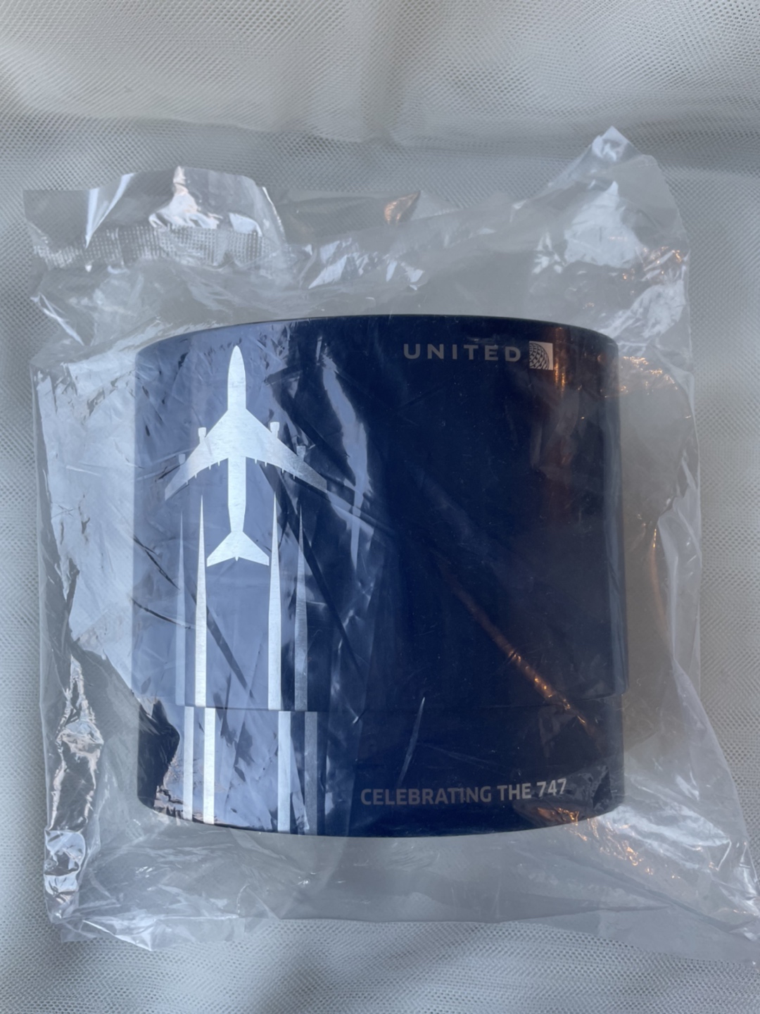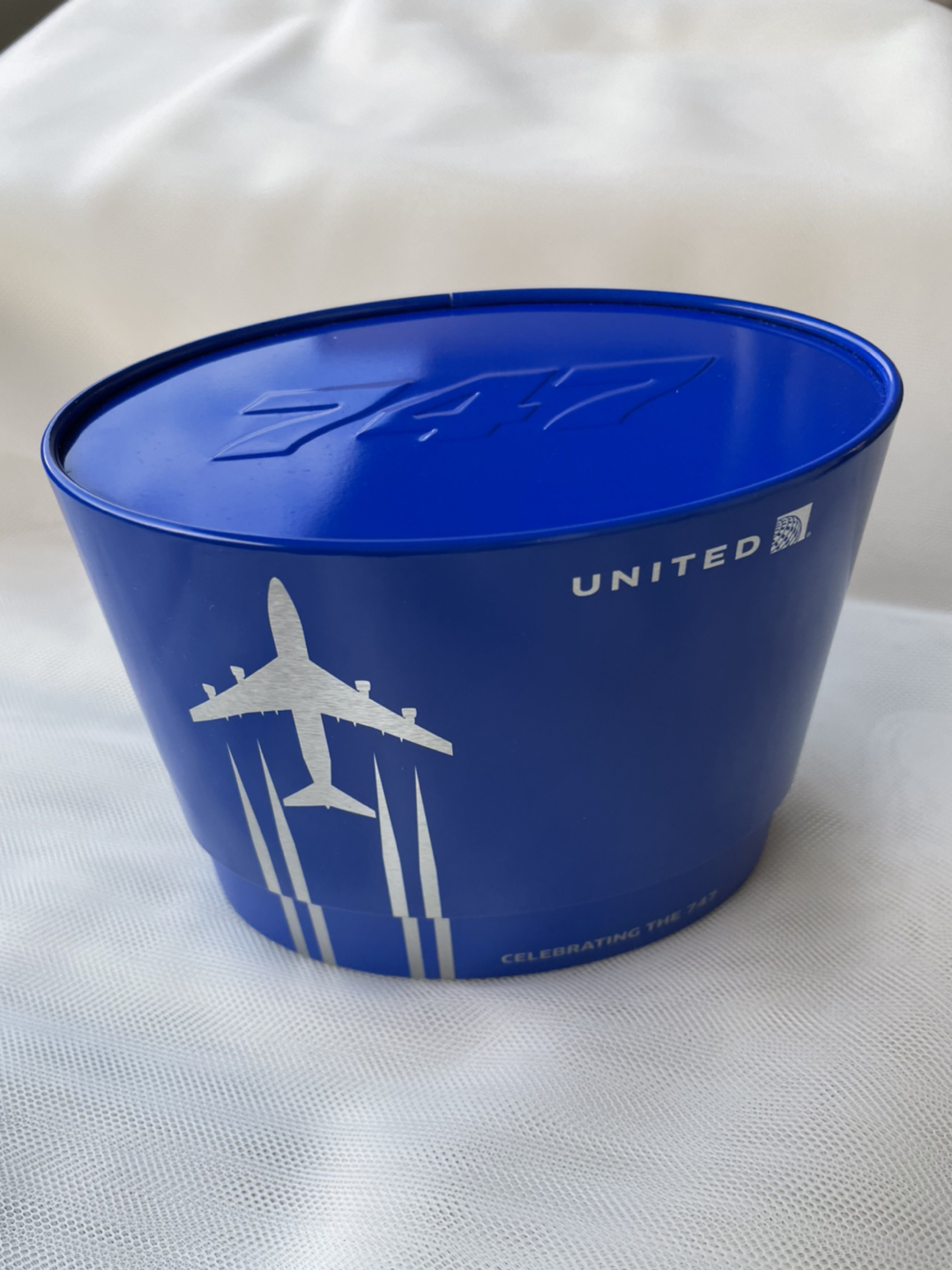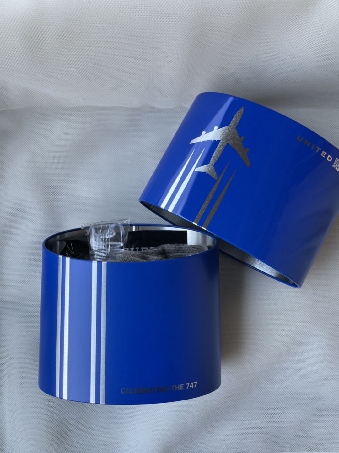 レア!ボーイング747退役記念 ユナイテッド航空ビジネスクラスアメニティ缶 ネイビー