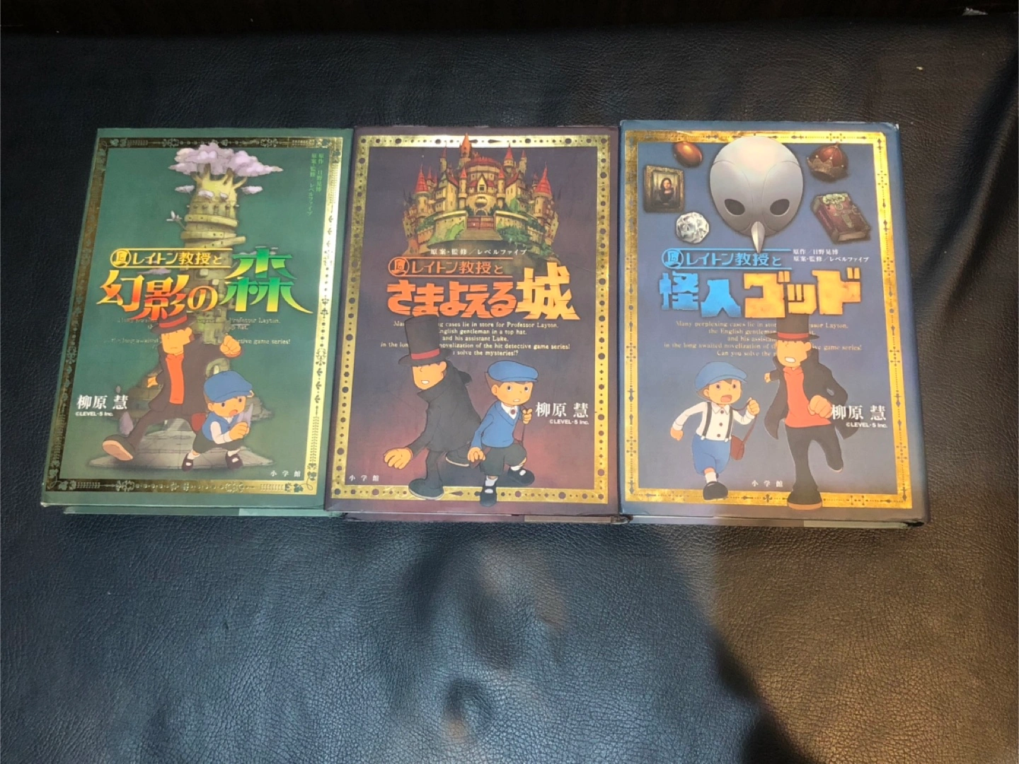 「レイトン教授と幻影の森」、「レイトン教授とさまよえる城」、「レイトン教授と怪人ゴッド」の3冊セットです。小説版、柳原慧 著。