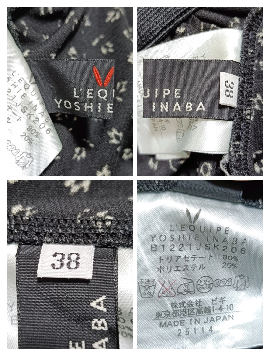 ご覧いただきありがとうございます! レキップ ヨシエイナバの黒地に小花柄がシックなギャザースカートです。 ​たっぷりとギャザーが施されたデザインで、着用するとふんわりとしたボリュームシルエットになり、とてもエレガントで個性的な雰囲気です。 ウエスト周りのタックと丸みのあるラインが、大人の女性らしいスタイルを演出します。​ シンプルなニットやブラウスと合わせるだけで、スカートが主役の華やかなスタイルが完成します。パンプスやショートブーツとの相性も抜群です。 □商品名□ ​​​レキップ ヨシエイナバ ギャザースカート 38 ボリュームシルエット 花柄 □ブランド□ L'EQUIPE YOSHIE INABA レキップ ヨシエイナバ □表記サイズ□ 38 □実寸サイズ(cm) □ 【平置きサイズ】 ウエスト:35 着丈:60 ※実寸につきまして多少の誤差はご了承ください。 ※表記サイズだけではなく実寸のサイズをご確認ください。 □カラー□ 黒白 □素材□ ​トリアセテート80% ポリエステル20% □コンディション□ 目立った汚れやダメージなど特にございません。 ※汚れはできる限り写真にて掲載しております。まずは画像をご確認ください。 どうぞよろしくお願い致します。 □商品管理番号□ EE1-V-5483