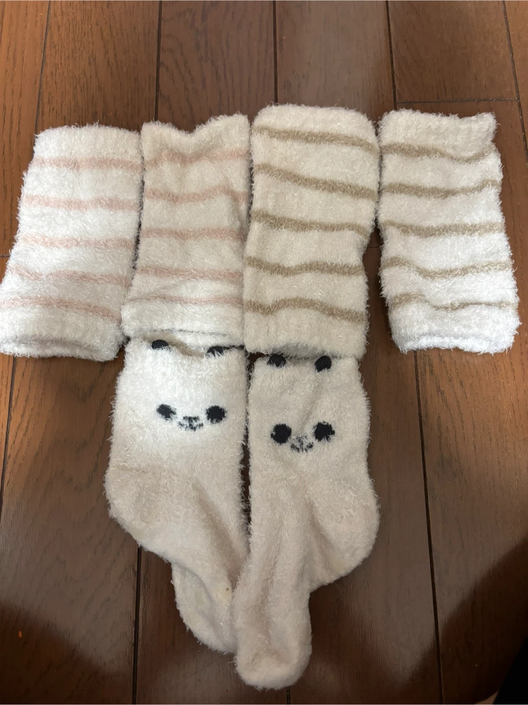赤ちゃんのレッグウォーマーとモコモコ靴下のセットです! レッグウォーマーは娘が0才のときに使っていたものです! 靴下は1歳の冬で履かせましたが歩けるようになってすぐだからなのか靴下が嫌いだったからなのか…ほぼ履いてません! 履いてくれるお子さんに…\(^^)/ 使用していたものですので比較的綺麗でも汚れや使用感多少はあると思ってくださいm(_ _)m 受け渡し場所は日にち、場所によって変更可能ですので相談ください!