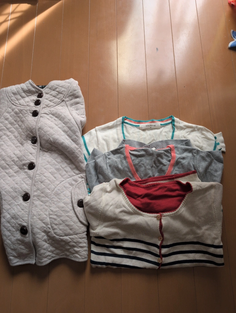 レディース服のまとめ売りです ・カーディガン、など。1番手前のカーディガンはリバーシブルです。 ・左側はポンチョです。 ・色やデザインは写真をご参照ください ・使用感は様々です 中古品であることご了承ください