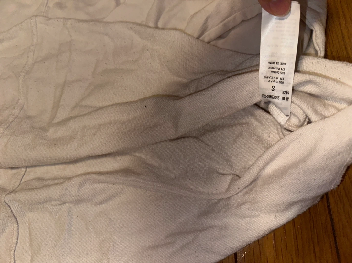 あたたかさ160cmですが着用してました。 クリーム色のような色味です👗 腕周りがタイトで可愛いです。 裏は毛玉があるのでお安くしています🙇♀️