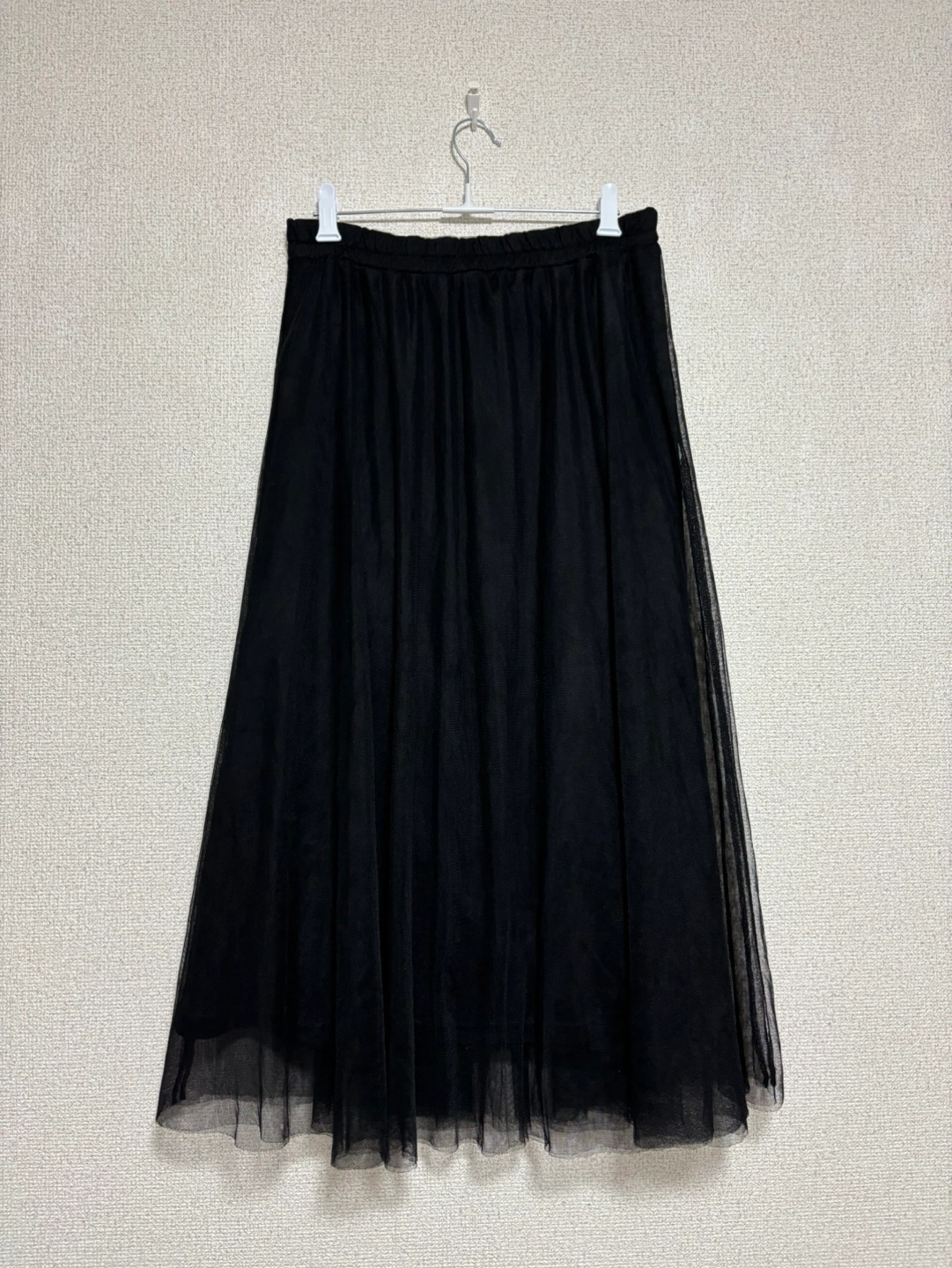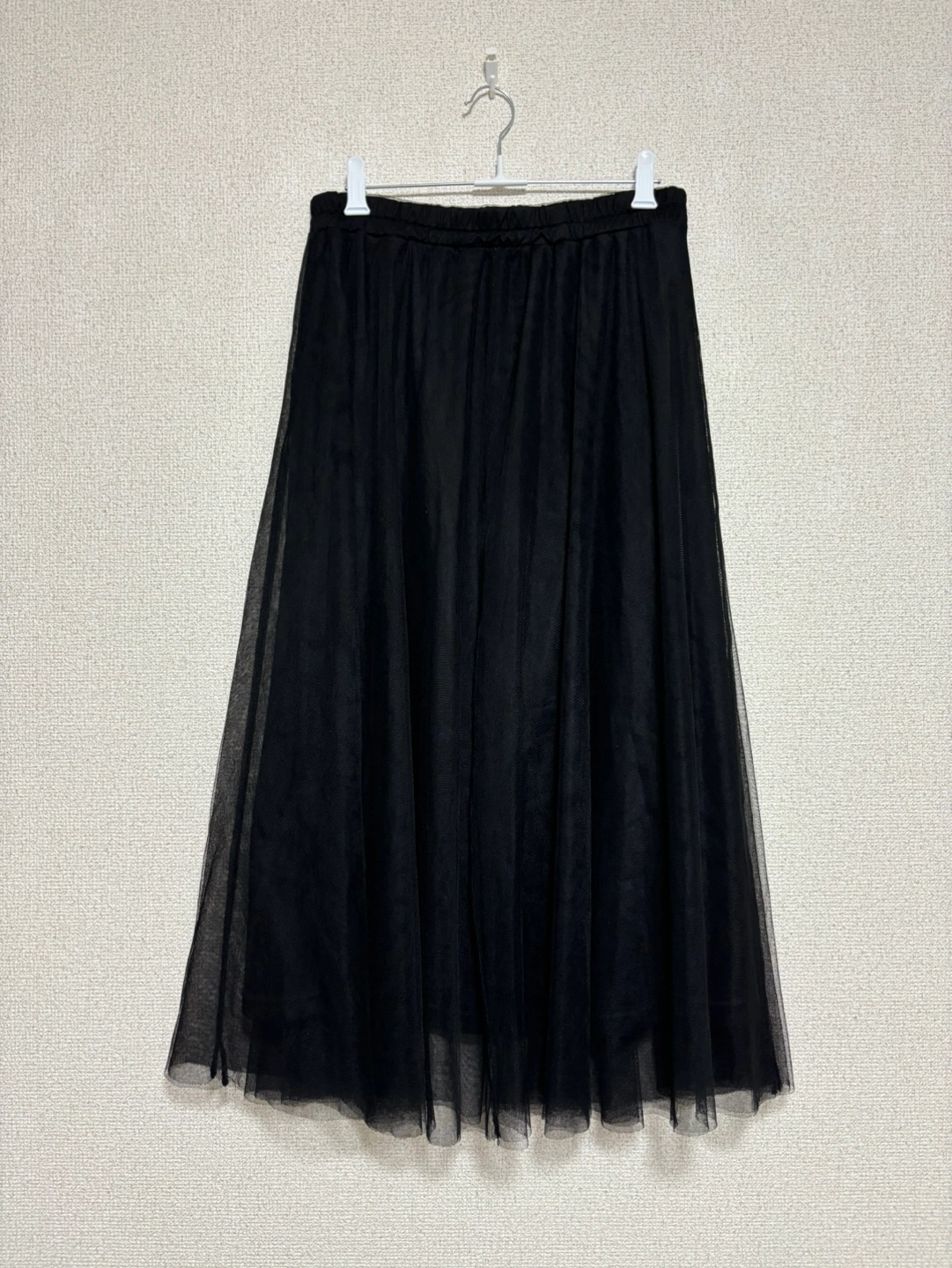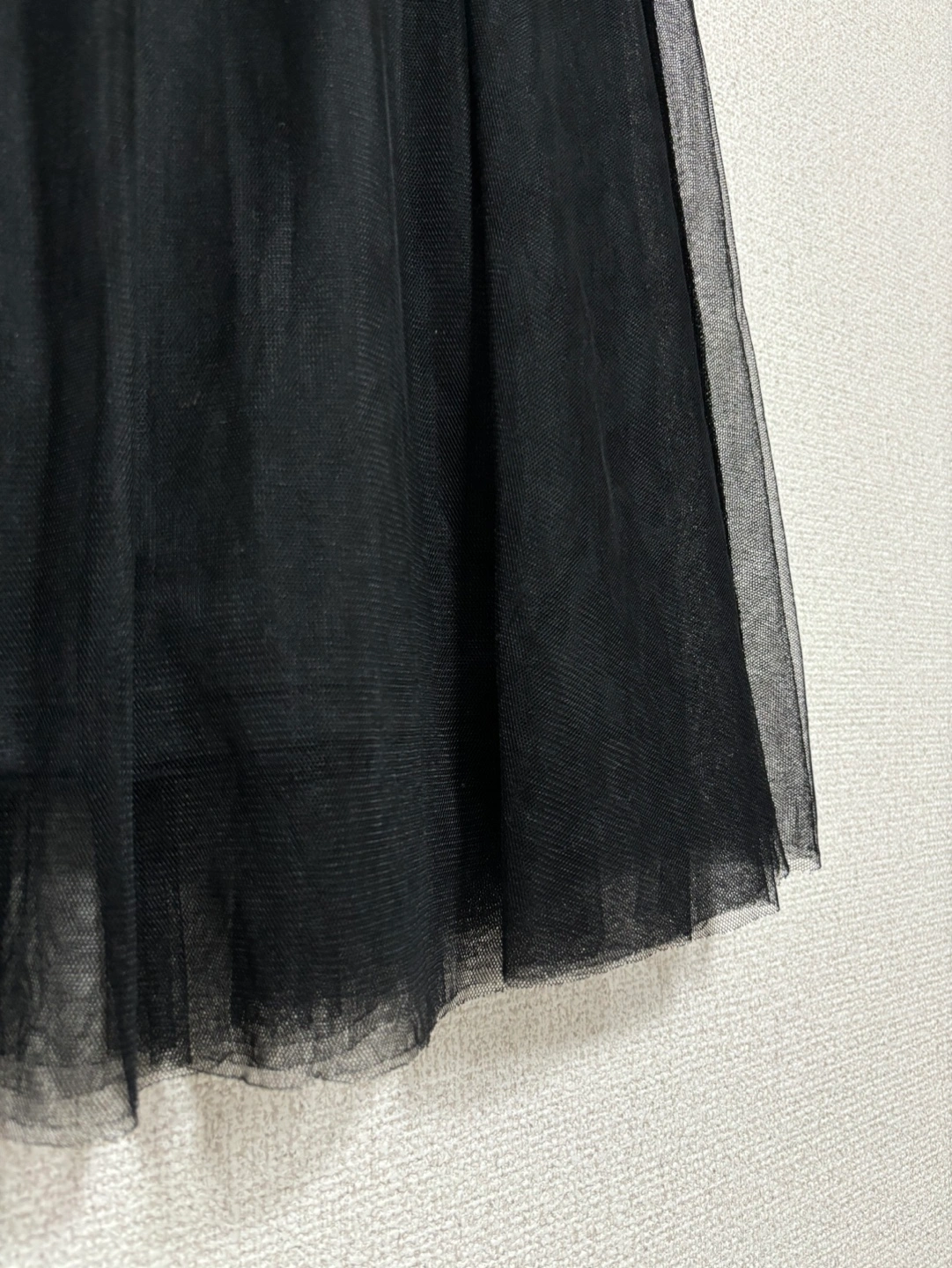 【レディース JINTY ブラック チュールスカート】 サイズ:M ウエスト:72cm 総丈(裏地):73cm 総丈(チュール):84cm 裏地があるので目立たないですが、 チュール部分に1箇所穴あきがあります。 (4枚目参照) ○素人採寸のため多少の誤差はご了承ください。 ○まとめ買い依頼お受け出来ます。 ○受け渡し場所は、基本的に小竹向原駅 日時によっては、池袋駅、恵比寿駅も可能 ご相談ください。