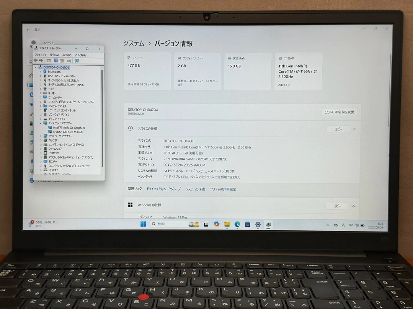 レノボのThinkPad E15 Gen 2 ノートパソコンです 【情報】 ブランド:レノボ 製品名:ThinkPad E15 Gen 2 OS:Windows 11 CPU:Core i7 1165G7 メモリ:16GB SSD:512GB グラフィック:GeForce MX450 画面サイズ:15型 (1920x1080) 【状態】 ランクB (使用感あり) バッテリー良好 【付属品】 65W充電器 中古品であることご了承ください