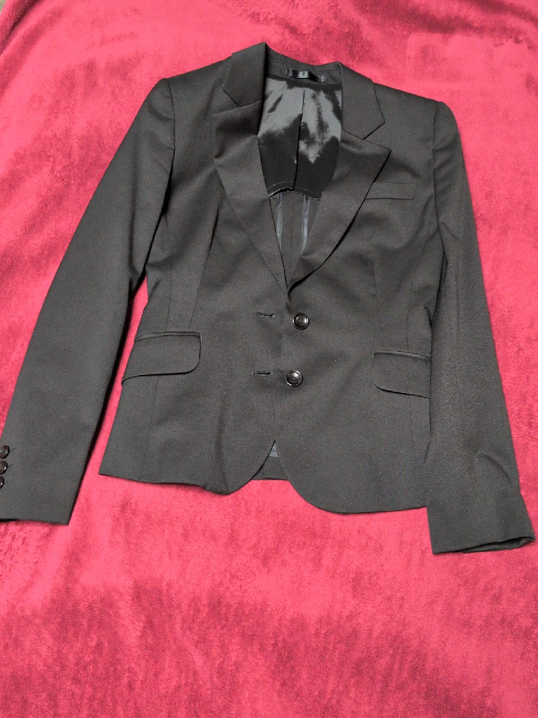レミュー femmeのスーツです 【情報】 ブランド:レミュー femme 種類:スーツ カラー:ブラック 素材:ウール & カーボンファイバー 【状態】 使用感少なめ 【付属品】 スーツカバー 中古品であることご了承ください。 採用試験と入庁式の計2回しか着用していないリクルートスーツです。サイズは記憶上5号だったと思います。 年齢的にリクルートではないので、どなたかにお譲りしたいです。 金額、受け渡し場所共に交渉可能です。 よろしくお願いします。
