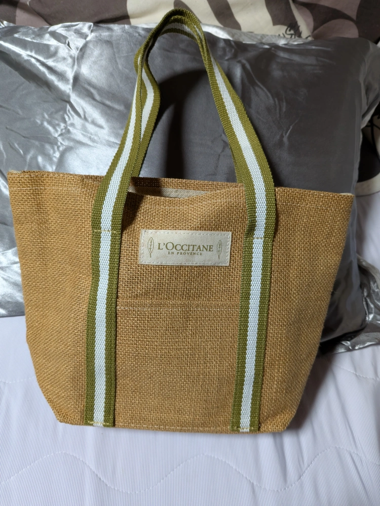 ロクシタンのトートバッグです ・カラー:ベージュ ・ブランド:ロクシタン ・素材:不明 ・状態:使用感少なめ 中古品であることご了承ください コーン🌽のような素材ですが、不明です…野菜入れにもなりますよ…