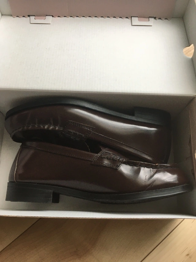 色味は箱に入れた状態の写真が 一番近いと思います。 室内試し履き1回 デスクワーク出勤1回のみの使用で あまり活用できていないので 出品します。 甲部分に横シワが入っておりますが よろしければ👞 Hawkins ENTRY 24.0 EEE (参考)購入価格:5,380円 受け渡しは東横線自由が丘駅で お願いしております💁🏼 近隣の駅でしたら可能な限り お伺いします。