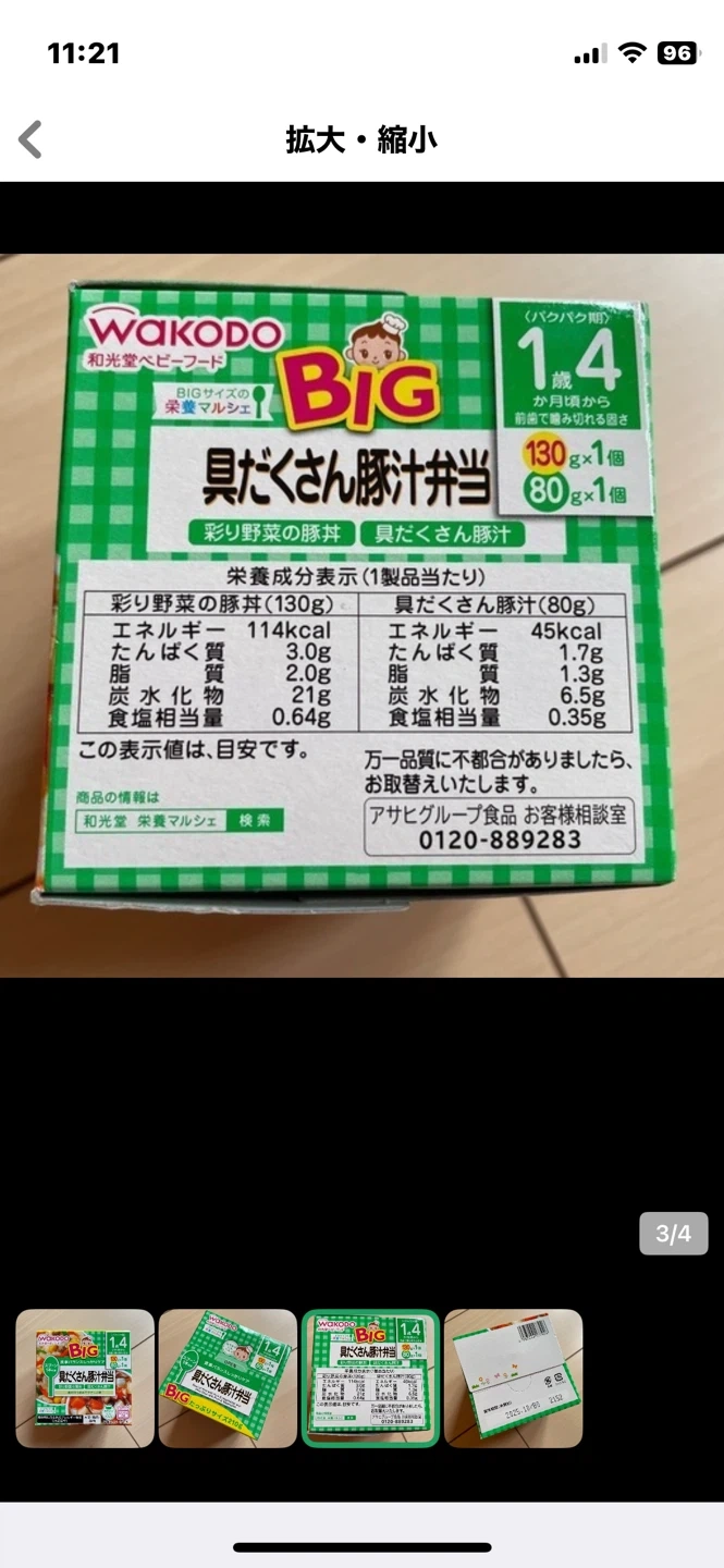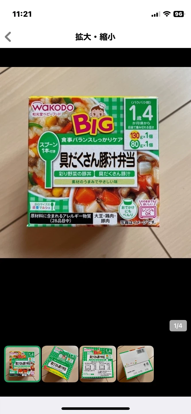 和光堂のベビーフード、具だくさん豚汁弁当です。 【情報】 ブランド:ワコウドウ 対象年齢:1歳4ヶ月頃から 内容量:130g×1個、80g×1個 【状態】 未使用未開封 賞味期限(未開封):2025.10/BO 自宅保管であることご了承ください