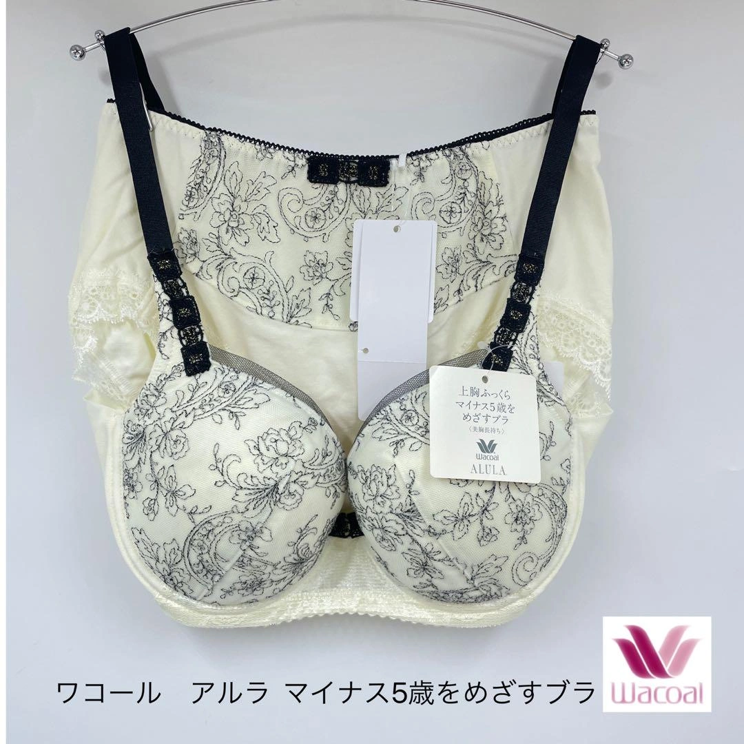 ワコール アルラ BHD426 マイナス5歳をめざすブラ ブラジャーE80 ショーツL ブラ ¥8470円 ショーツ ¥3300円 【上胸ふっくら、マイナス5歳をめざすブラ《美胸長持ち》】 大人のボディをラクに美しく整えてくれる着けごこちにこだわったシリーズ。 ふっくら美胸、ながつづき。 脇から背中もすっきり、やわらかな肌ざわり ●リフトアップ構造…ナノ素材のリフティングシートでバストを下から持ち上げ、まるくてきれいなシルエットに。ナノ素材の摩擦抵抗により、動いたときのブラジャーの着くずれを軽減し、つくったデコルテをキープ ●バック上辺は折り返し始末で肌にくいこみにくく、アウターにひびきにくい ●カップ脇上辺とアンダー部分は、伸びのよい肌側綿混ストレッチテープを使用し、やさしい肌ざ わり ●段差をおさえ、なめらかライン ご希望の方はお気軽にご連絡ください。