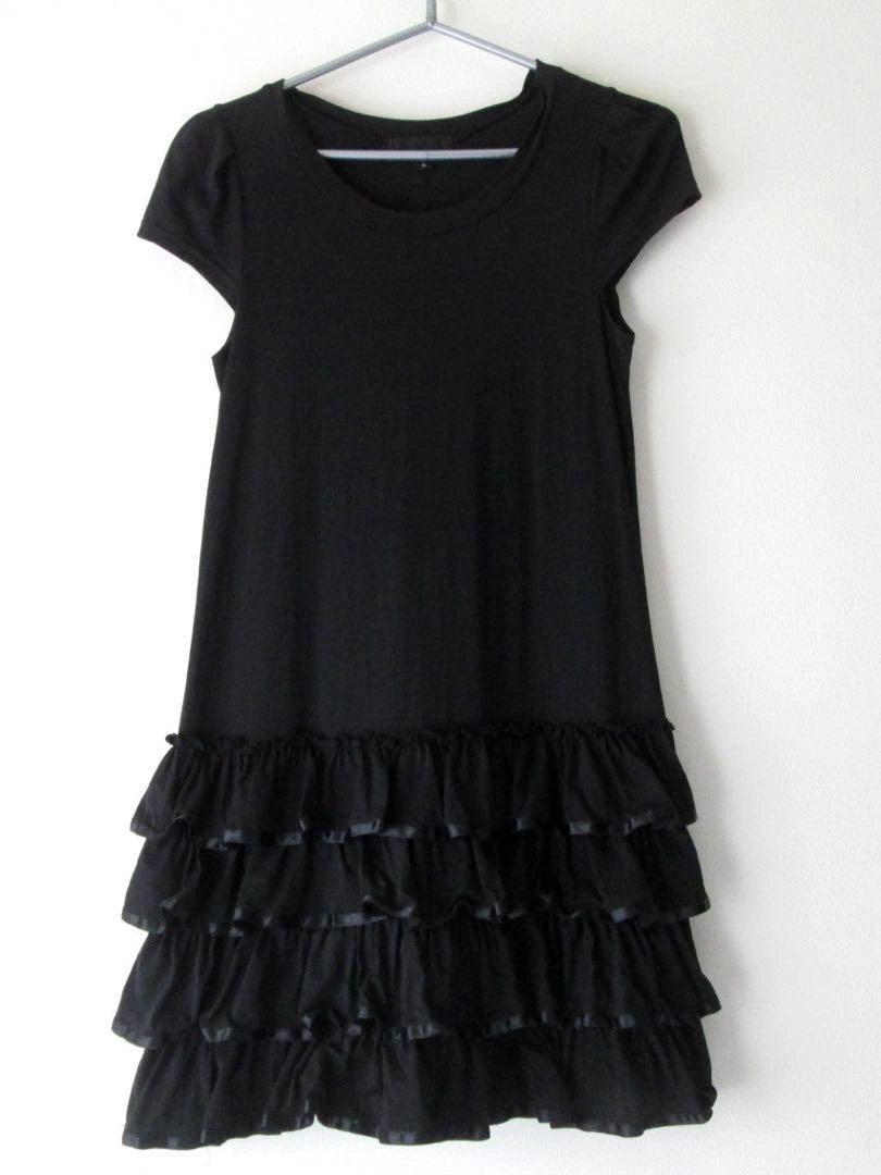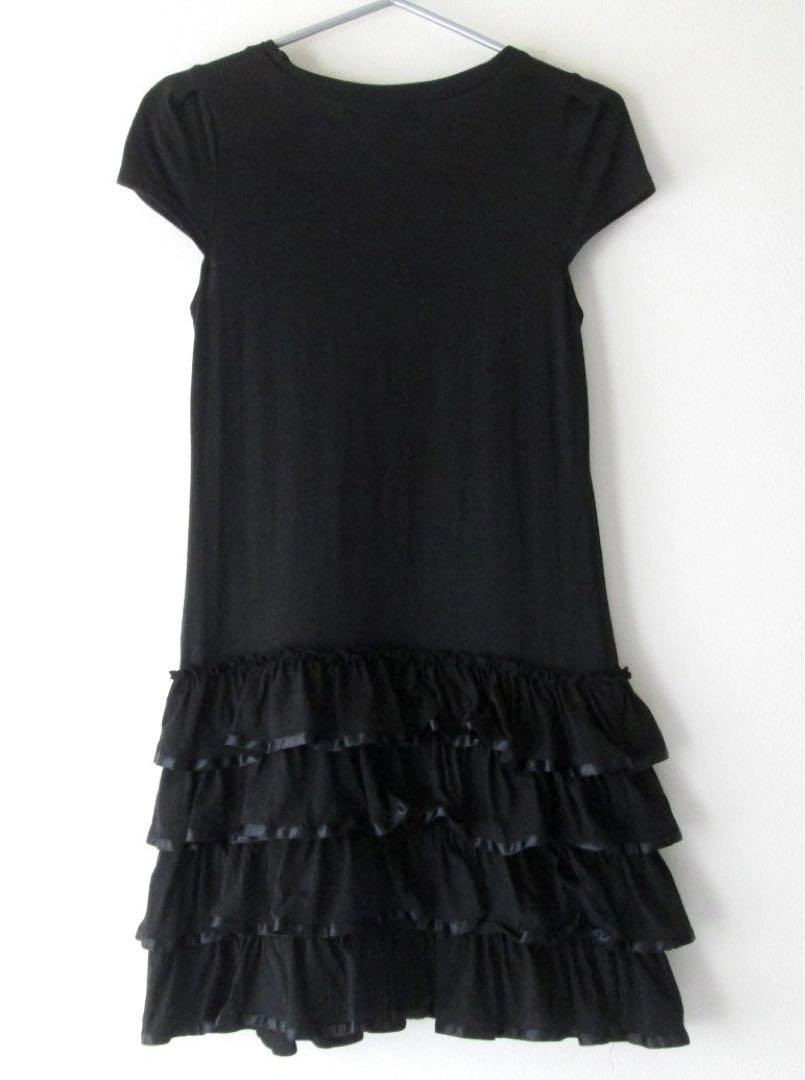 JILLSTUARTのワンピースです。 スカート部分4段フリル。 素材は綿100%。 表示サイズは2(バスト-79-83、ヒップ83-87、身長157-162)です。 置いて計ると脇下身幅が約38センチ、丈が約80センチ、肩からの袖丈が約13センチ、肩幅が約33センチです。 Tシャツ生地で、中古品ですので多少の着用感はあるかと思いますが、まだまだ着れると思います。 色はブラック、素材はコットン100%(スカート裾テープ部分はポリエステル100%)です。 サイズは身長162㎝~166㎝、バスト84㎝~88㎝、ヒップ88㎝~92㎝です。 柄は無地、季節は春夏、シルエットはフレアです。 ご希望の方はお気軽にご連絡ください。