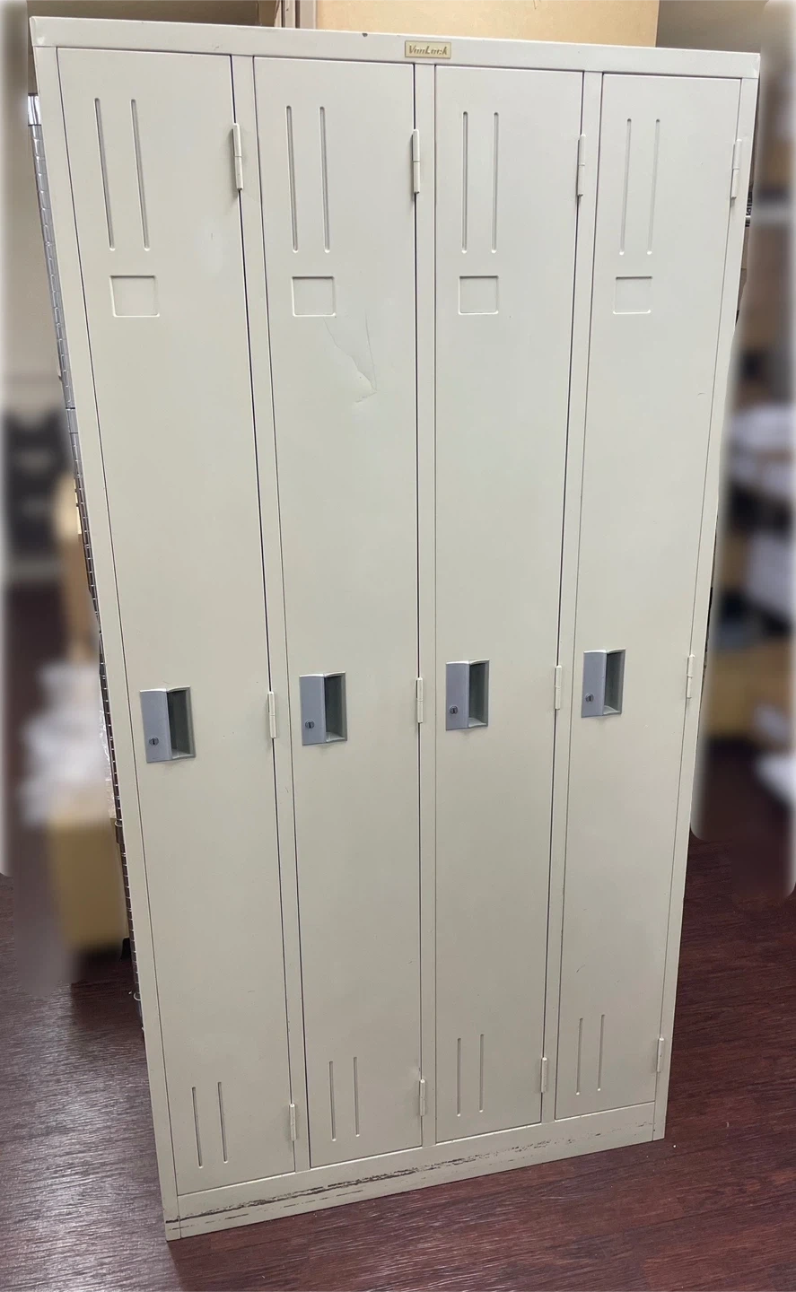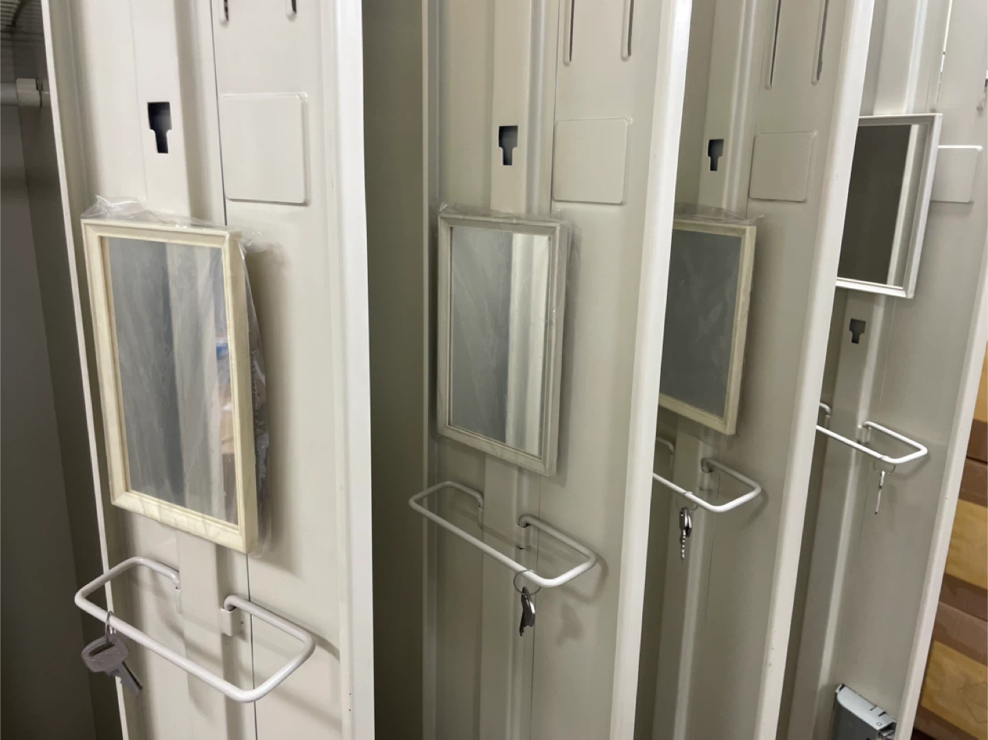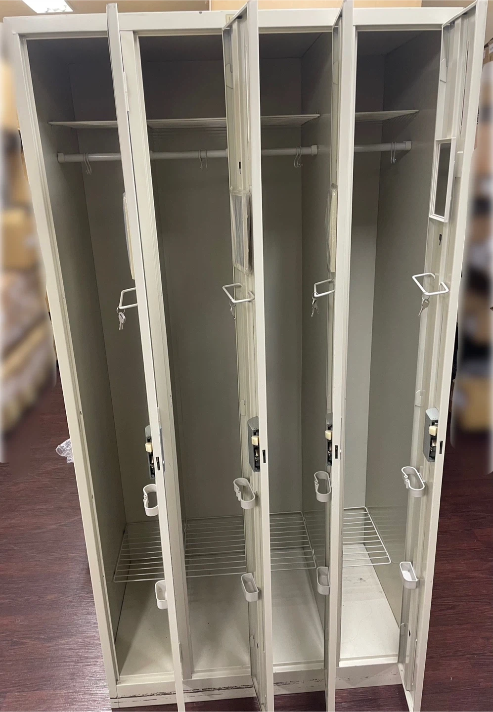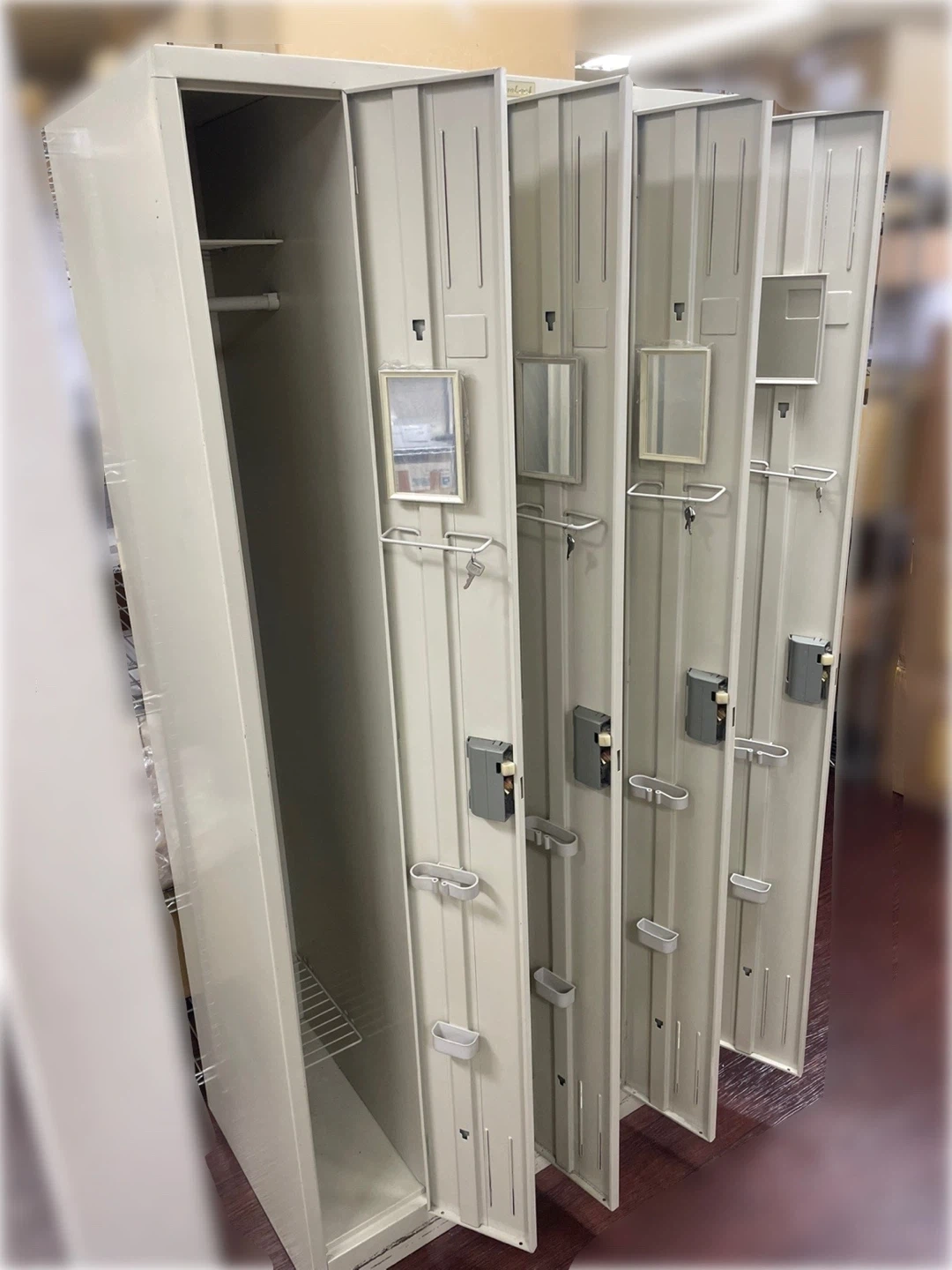 VanLackの4人用ロッカーです。 鏡・S字フック(2つずつ)・傘ホルダー・網棚2枚 がそれぞれについています。 ロングコートなども収容可能です。 それぞれに鍵が付いているので、貴重品を入れて施錠が出来ます。(1箇所につき元々2本ついていたようですが、2本とも残っているのは2箇所、残りは1本のみです) 【情報】 ブランド:ヴァンラック タイプ:4連ロッカー カラー:ニューグレー サイズ: W900 / D515 / H1790 【状態】 目立つものとしては、左から2番目のロッカーの扉にへこみ有り、ロッカー下部にサビのような汚れがあります。(写真7枚目と8枚目) 鏡は使用感がありません(購入時の袋がそのまま被せてあります) その他細かいキズや汚れなどはご理解ご了承の上、ご購入ください。 【取引条件】 直接引き取りに来てくれる方のみでお願いします。 (境南中央公園の近くです) 上記の点・品・自宅保管にご理解・ご納得いただける方にお願いしたいです。 ご不明点があればコメントよろしくお願いいたします。 #ロッカー #保管 #鍵付き #更衣室 #オフィス