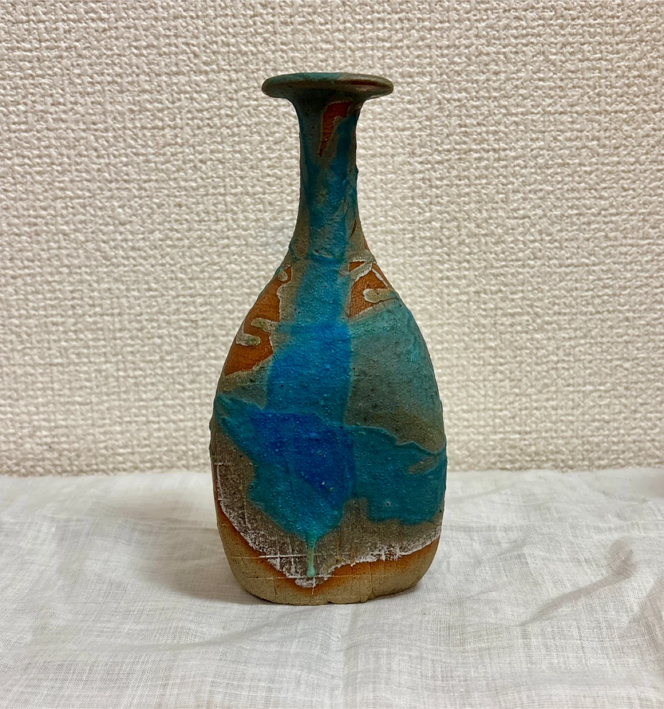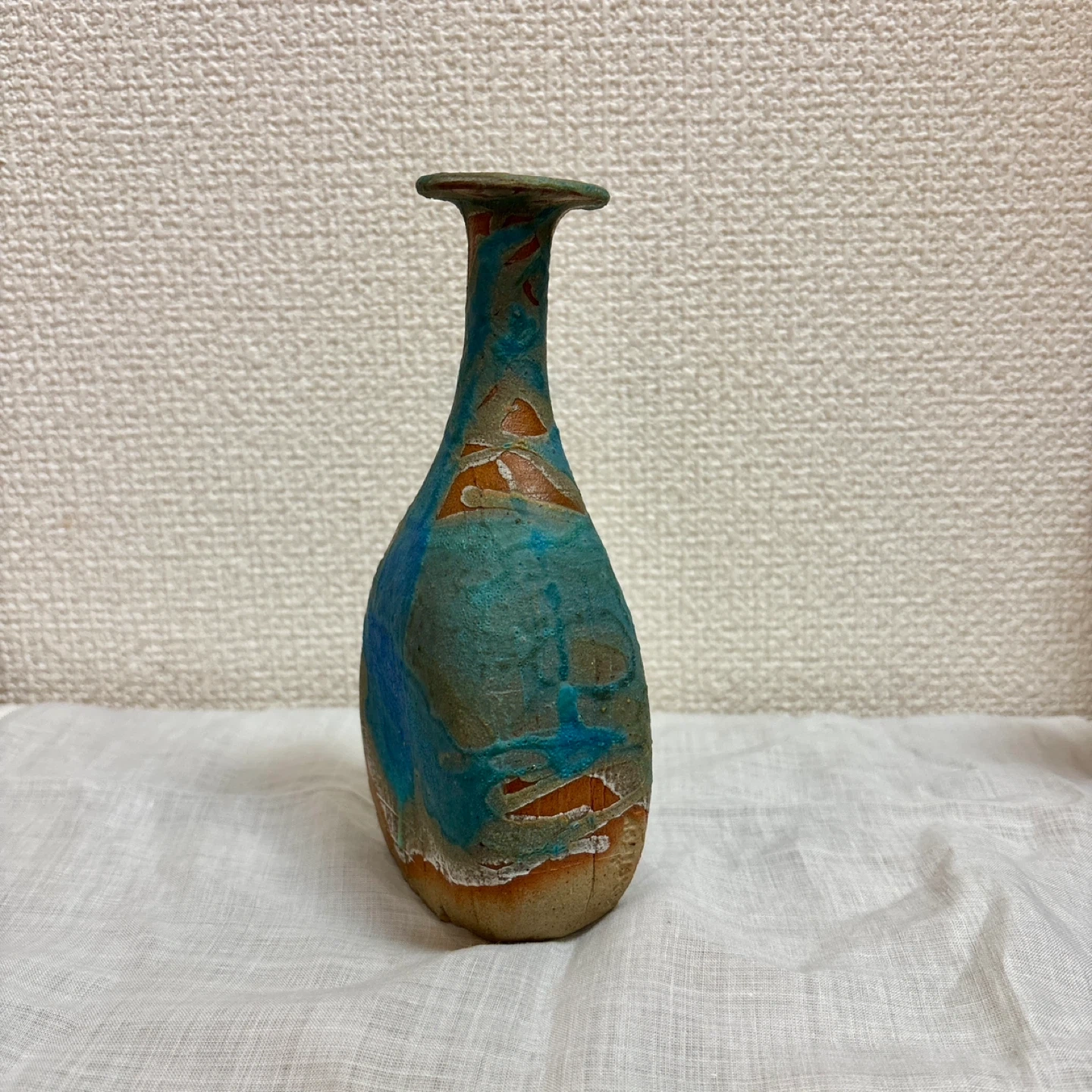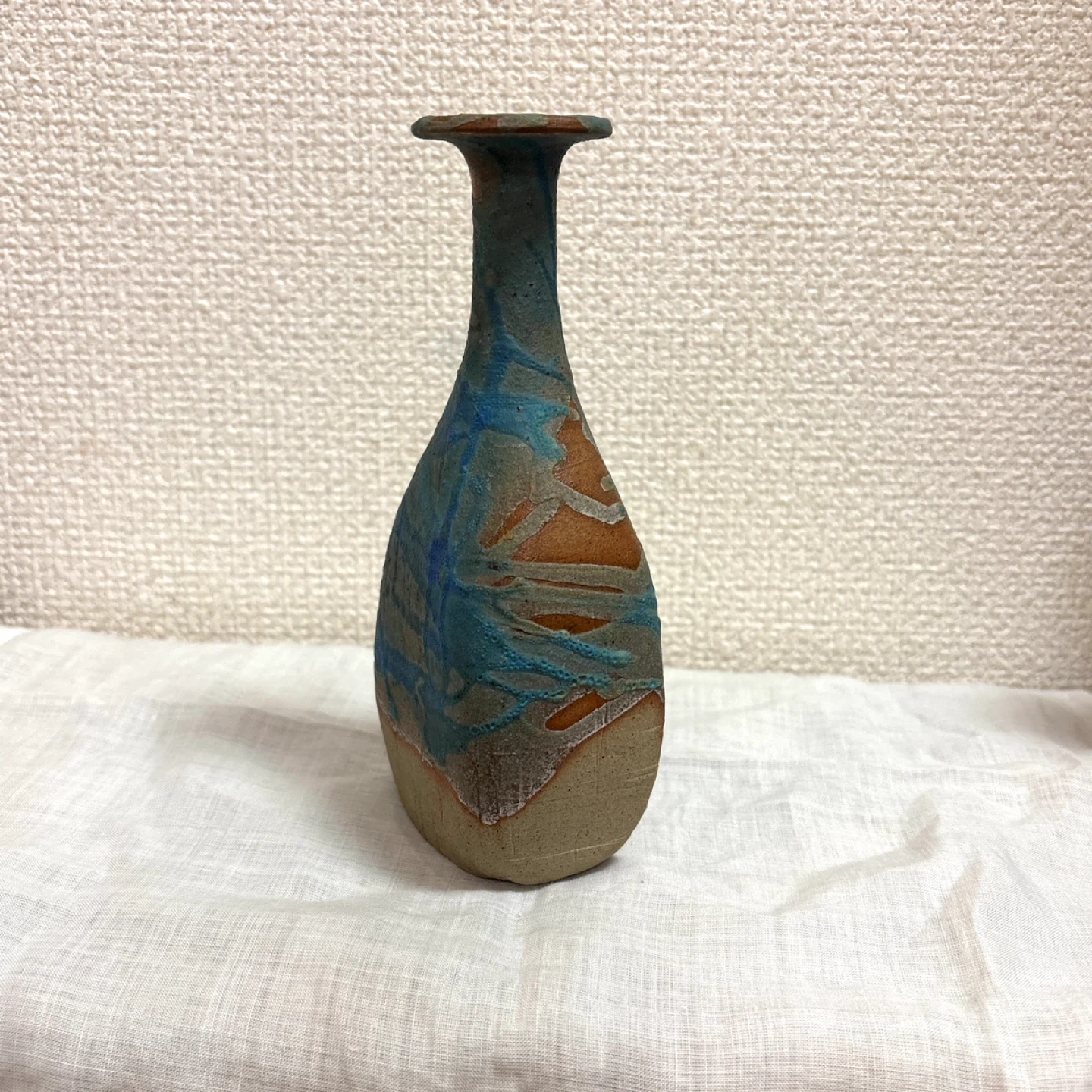 ご覧頂きましてありがとうございます! サインと刻印のある一点ものの陶芸作品です。 青釉が流れるように掛けられており、光の加減で色の表情が変わります。 土の質感と釉薬のコントラストがとても綺麗な作品で、手仕事ならではの温かみを感じます。 一輪挿しとしてもお使いいただけますが、オブジェとしてそのまま飾っても映えるデザインです。 長期自宅保管のものです。 目立つ傷や汚れは見当たりませんが、ハンドメイド・ヴィンテージ作品にご理解のある方のみお願いいたします。 ✴︎サイズ 口径 約4.3㎝ 高さ 約17㎝ 幅 約8㎝ キャンセル、返品、商品お受け取り後のクレームなどはお受け出来ませんので、ご了承頂けるようお願い致します。 #ミニ フラワーベース #アンティーク花瓶 #一輪挿し #インテリア #オブジェ #陶芸作品 #Art Pottery #作家もの #青釉 #花器 #陶器のある暮らし #ヴィンテージ花瓶 #工芸品 #手仕事のうつわ
