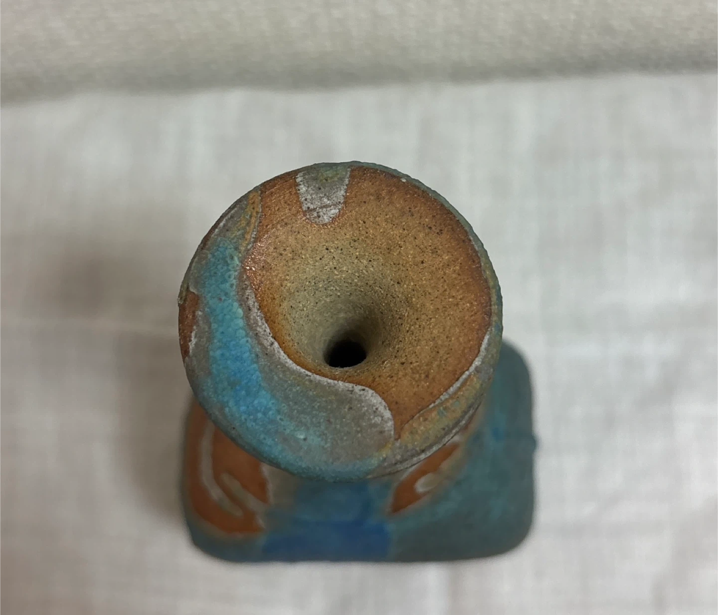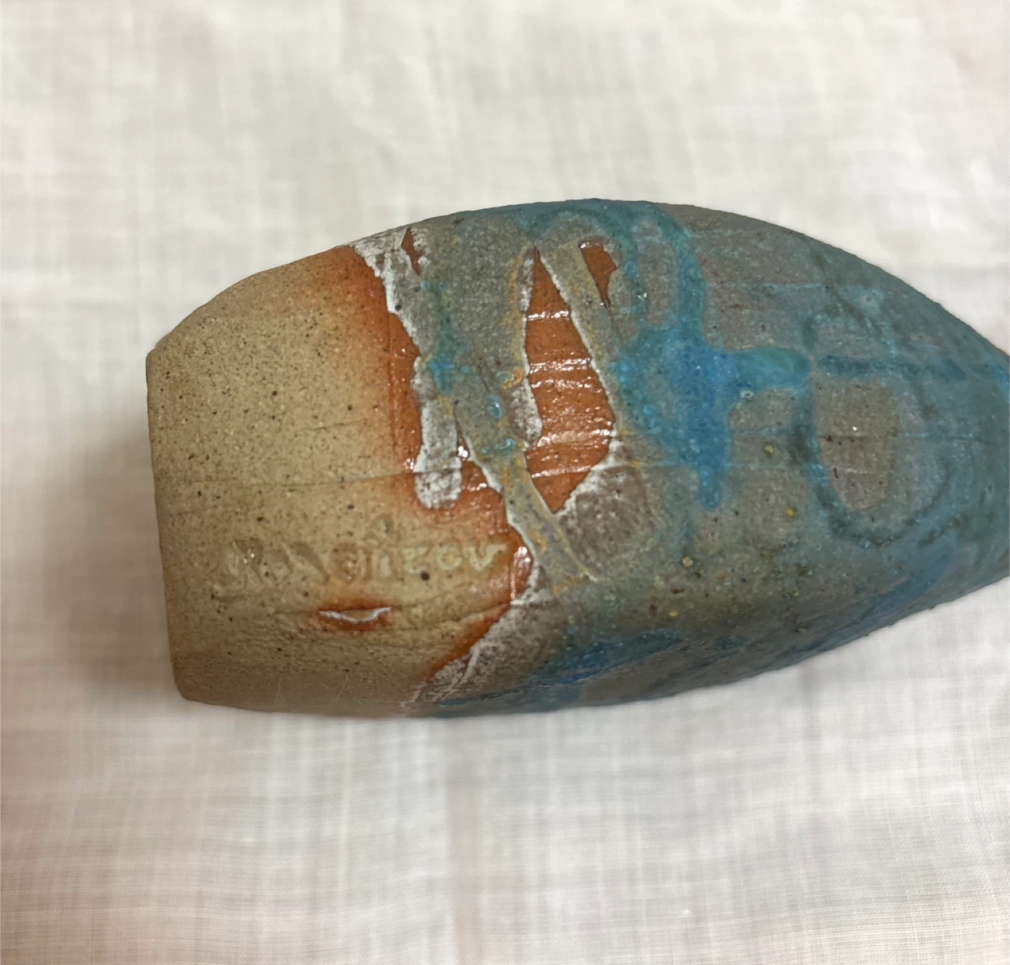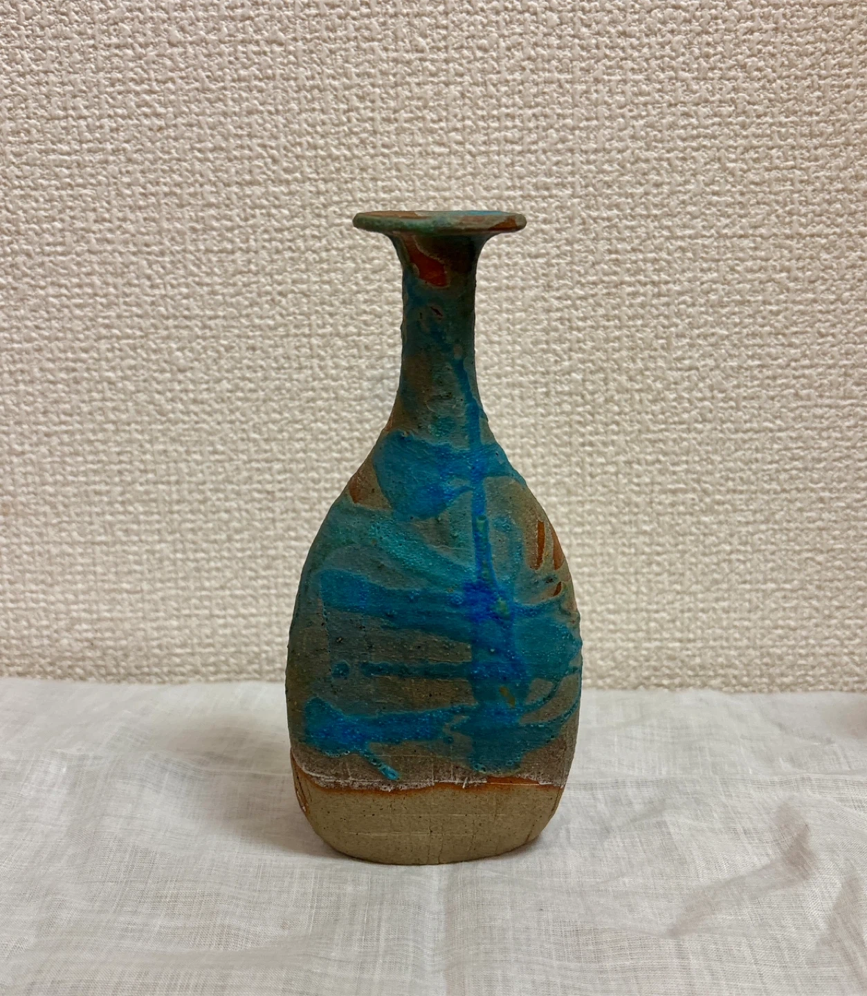 ご覧頂きましてありがとうございます! サインと刻印のある一点ものの陶芸作品です。 青釉が流れるように掛けられており、光の加減で色の表情が変わります。 土の質感と釉薬のコントラストがとても綺麗な作品で、手仕事ならではの温かみを感じます。 一輪挿しとしてもお使いいただけますが、オブジェとしてそのまま飾っても映えるデザインです。 長期自宅保管のものです。 目立つ傷や汚れは見当たりませんが、ハンドメイド・ヴィンテージ作品にご理解のある方のみお願いいたします。 ✴︎サイズ 口径 約4.3㎝ 高さ 約17㎝ 幅 約8㎝ キャンセル、返品、商品お受け取り後のクレームなどはお受け出来ませんので、ご了承頂けるようお願い致します。 #ミニ フラワーベース #アンティーク花瓶 #一輪挿し #インテリア #オブジェ #陶芸作品 #Art Pottery #作家もの #青釉 #花器 #陶器のある暮らし #ヴィンテージ花瓶 #工芸品 #手仕事のうつわ