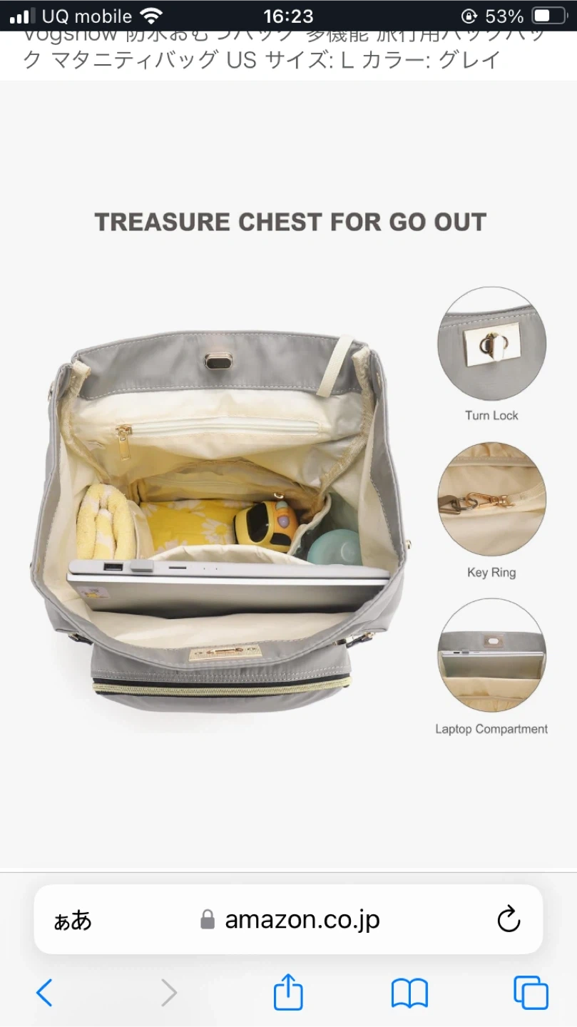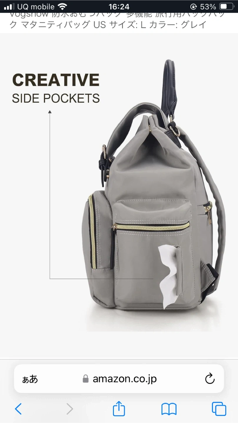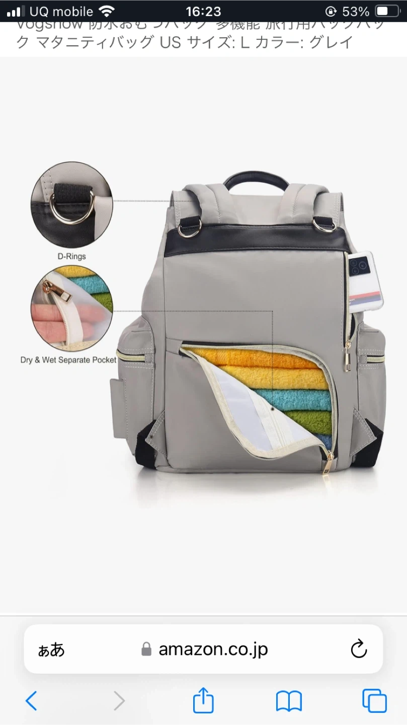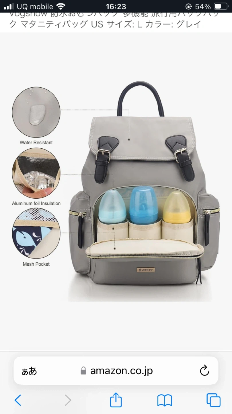 ヴォーグショウのマザーズバッグ リュックです 【情報】 ブランド:ヴォーグショウ カラー:グレー 【状態】 使用感少なめ あまり出かけられず使用回数少ないです 目立つ傷汚れなし Amazonでも販売中 他サイトから問い合わせくる為突如削除します Vogshow 防水おむつバッグ 多機能 旅行用バックパック マタニティバッグ US サイズ: colorグレイ 取り扱い案内 手洗いのみ この商品について 革新的なスタイル - このマタニティベビーおむつバッグは、おむつバッグのバックパック、ハンドバッグとしてだけでなく、ショルダーバッグ、クロスボディバッグとして着用できるクロスボディストラップも提供し、スタイリッシュなママになります。 すべての異なるスタイルがあなたをよりユニークにします。 大容量&マルチポケット - 寸法: 長さ13.7インチ x 高さ15.7インチ x 幅7.8インチ。重量: 1.3ポンド。13個のコンパートメント、3つの断熱ボトルホルダー、内側に大きな断熱ポケット1つ、サイドティッシュポケット1つ、スナック用サイドポケット1つ、ウェットドライ分離ポケット1つ、盗難防止バックポケット1つ、パッド入りノートパソコンコンパートメント1つ(約3つ)。 2.2 インチ) その他の 4 つのポケットは、赤ちゃんの必需品を入れるのに十分なスペースを提供し、多様なニーズを満たします。 実用的で便利 - メインポケットにあるキーチェーンで、鍵に簡単にアクセスできます。 持ちやすいハンドル、柔らかい厚手のパッド入りショルダーストラップが、肩を疲労軽減から守ります。 上部はファスナーではなくマグネットスナップが2つ付いており、メタルフレームおむつバッグバックパックよりも開けやすくなっています。 背面の開口部により、上部を通らずに ベビーバッグの内側にアクセスできます。 防水&耐久性 - おむつバックパックは、軽量で防水性のある素材で高密度で環境に優しく、お手入れや拭き取りが簡単バックパック全体のオムツバッグは、細かいステッチと優れた破れ抵抗性を備え肩ひもとハンドルの縫い目を強化裂けずに耐久性を高めている スタイリッシュな小さなおむつバッグだけでなく、ハンドバッグ、ショルダーバッグ、ベビーカーバッグとしても使えます。ベビーカー、荷物、ショッピングカートに取り付けることができます。コンバーチブルで万能で、あなたのスタイルに合わせて着用できます。
