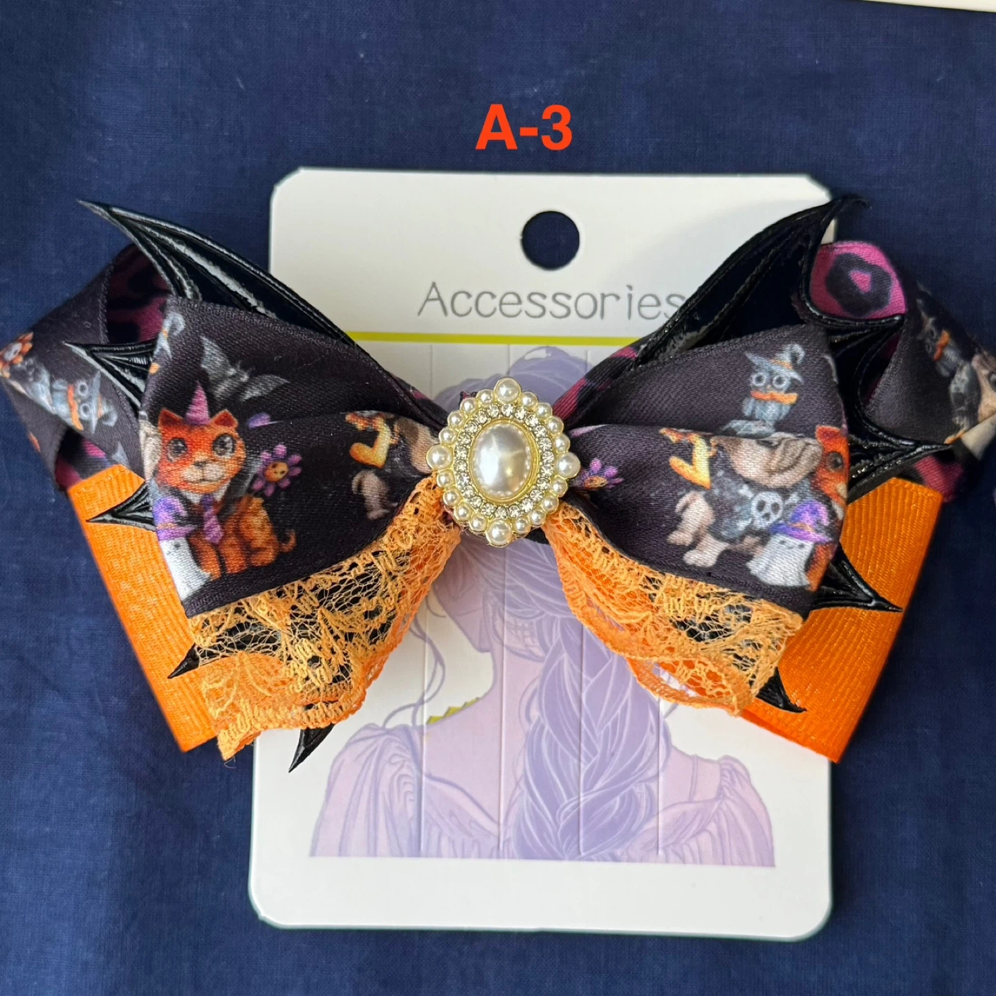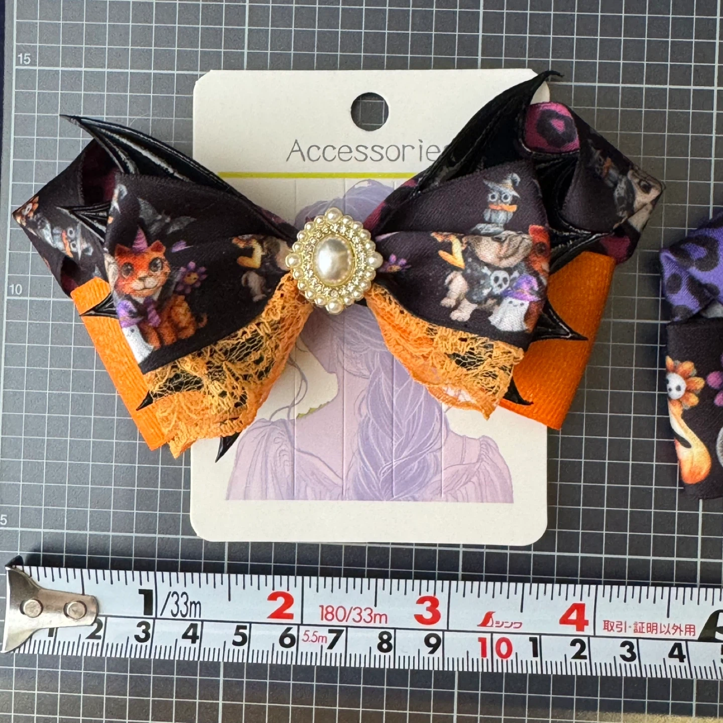 ハロウィンの季節にぴったりな、存在感たっぷりのハンドメイドヘアゴムです。 約13cmの大きめサイズで、まとめ髪やポニーテールを華やかに彩ります。 🕸️ 特徴 • 一点一点手作りのため一点物 • 約13cmの存在感でコーディネートのアクセントに • ハロウィンパーティーやイベント、普段使いにもおすすめ 🎃 お子様から大人の方まで楽しめるデザインで、仮装アイテムとしても大活躍します。