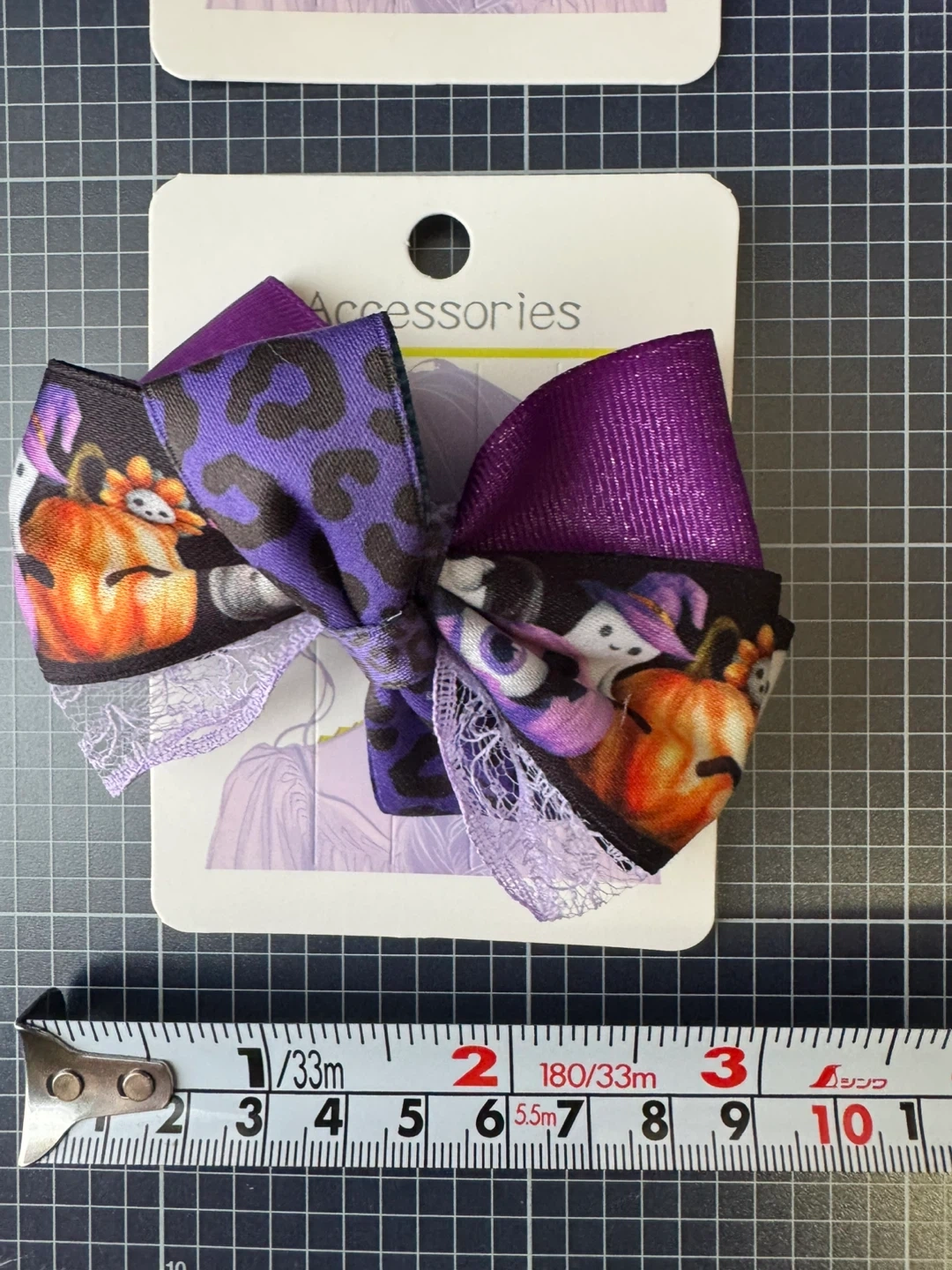 ハロウィンの季節にぴったりな、存在感たっぷりのハンドメイドヘアゴムです。 約10cmの大きめサイズで、まとめ髪やポニーテールを華やかに彩ります。 🕸️ 特徴 • 一点一点手作りのため一点物 • 約10cmの存在感でコーディネートのアクセントに • ハロウィンパーティーやイベント、普段使いにもおすすめ 🎃 お子様から大人の方まで楽しめるデザインで、仮装アイテムとしても大活躍します。