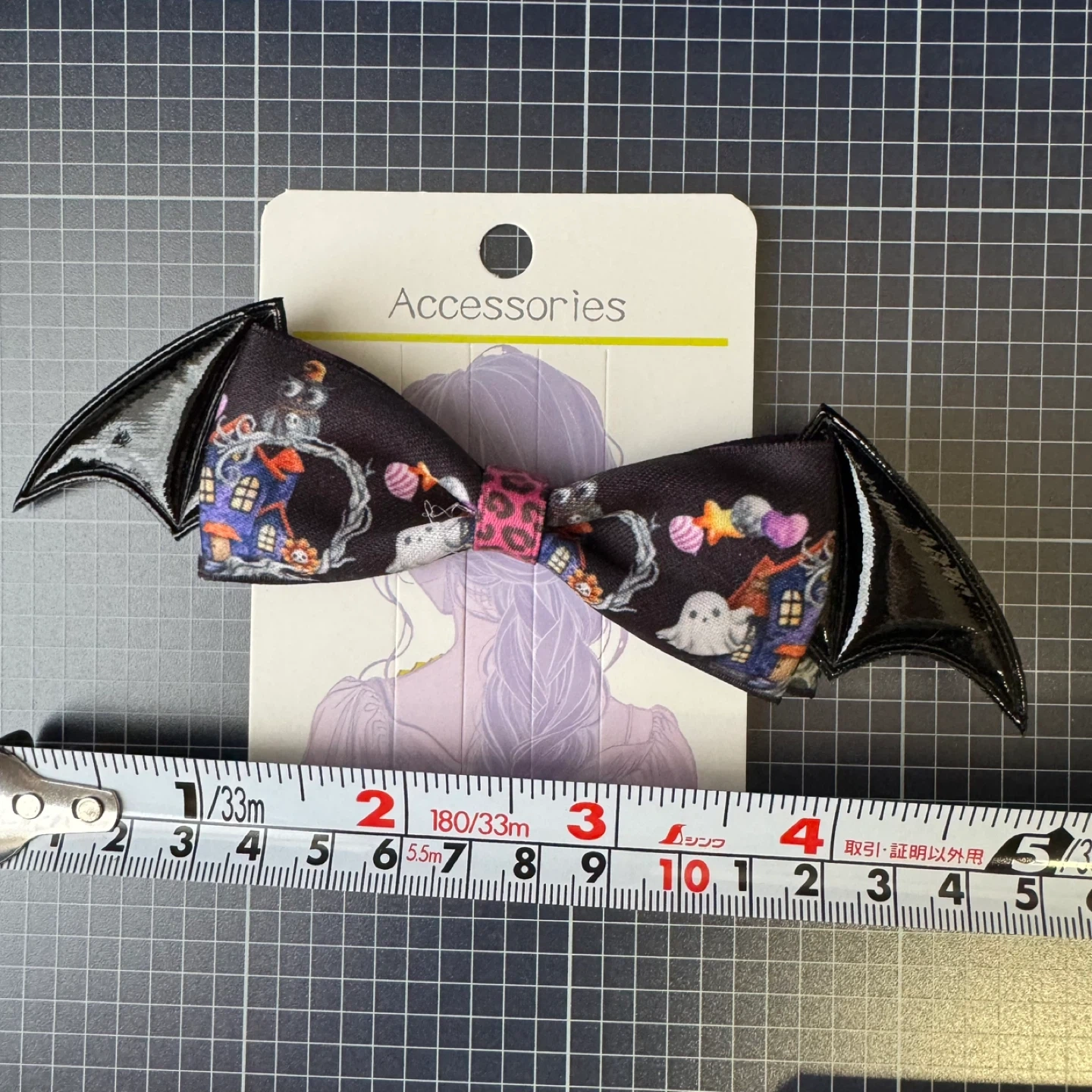 ハロウィンの季節にぴったりな、存在感たっぷりのハンドメイドヘアゴムです。 約15cm(羽なしサイズ9cm)の大きめサイズで、まとめ髪やポニーテールを華やかに彩ります。 🕸️ 特徴 • 一点一点手作りのため一点物 • 約15cm(羽なしサイズ9cm)の存在感でコーディネートのアクセントに • ハロウィンパーティーやイベント、普段使いにもおすすめ 🎃 お子様から大人の方まで楽しめるデザインで、仮装アイテムとしても大活躍します。
