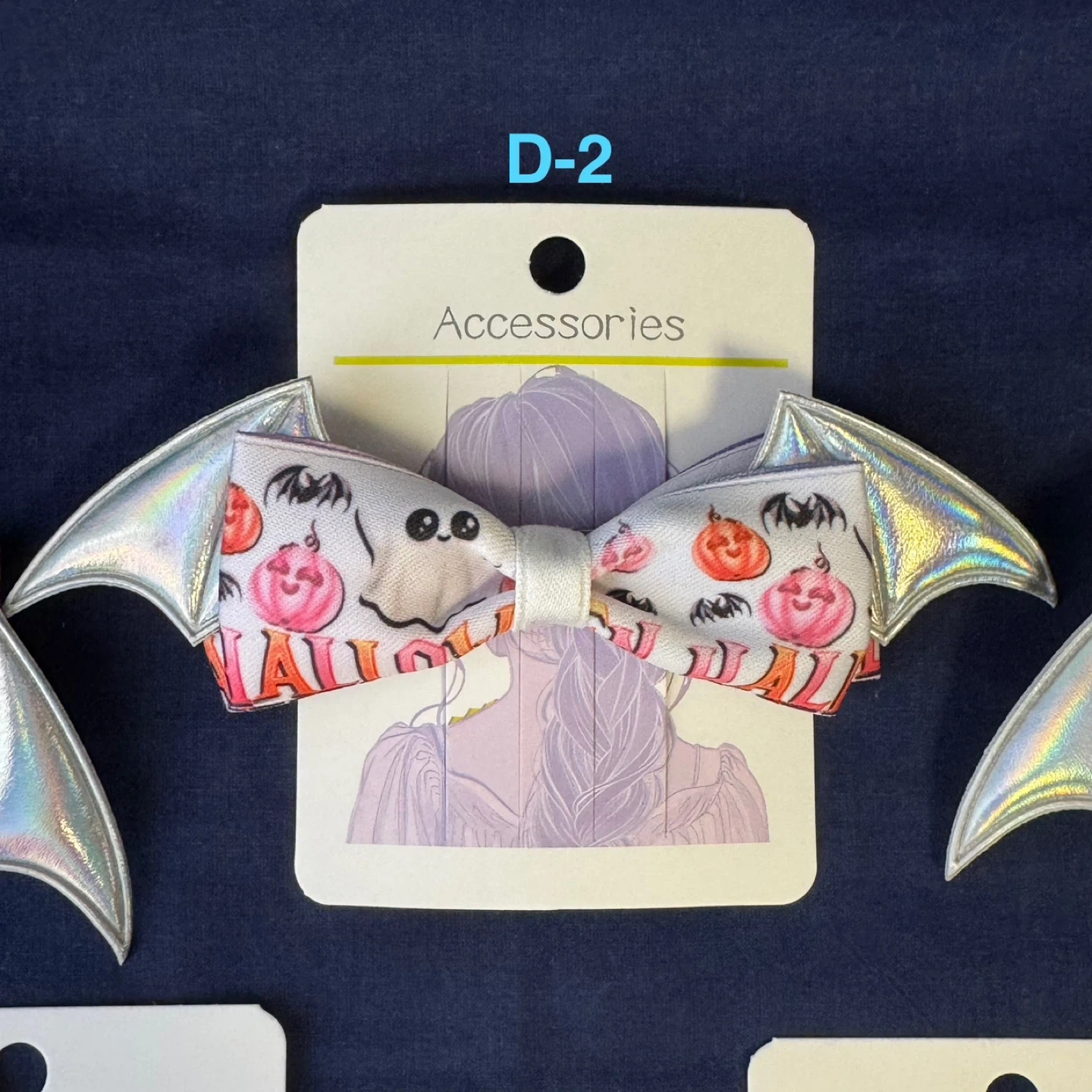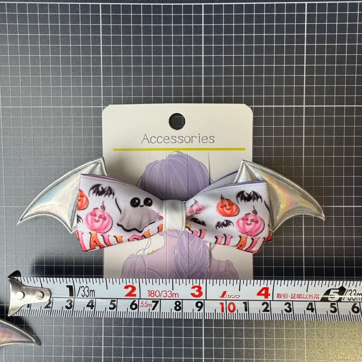 ハロウィンの季節にぴったりな、存在感たっぷりのハンドメイドヘアゴムです。 約15cm(羽なしサイズ9cm)の大きめサイズで、まとめ髪やポニーテールを華やかに彩ります。 🕸️ 特徴 • 一点一点手作りのため一点物 • 約15cmの存在感でコーディネートのアクセントに • ハロウィンパーティーやイベント、普段使いにもおすすめ 🎃 お子様から大人の方まで楽しめるデザインで、仮装アイテムとしても大活躍します。