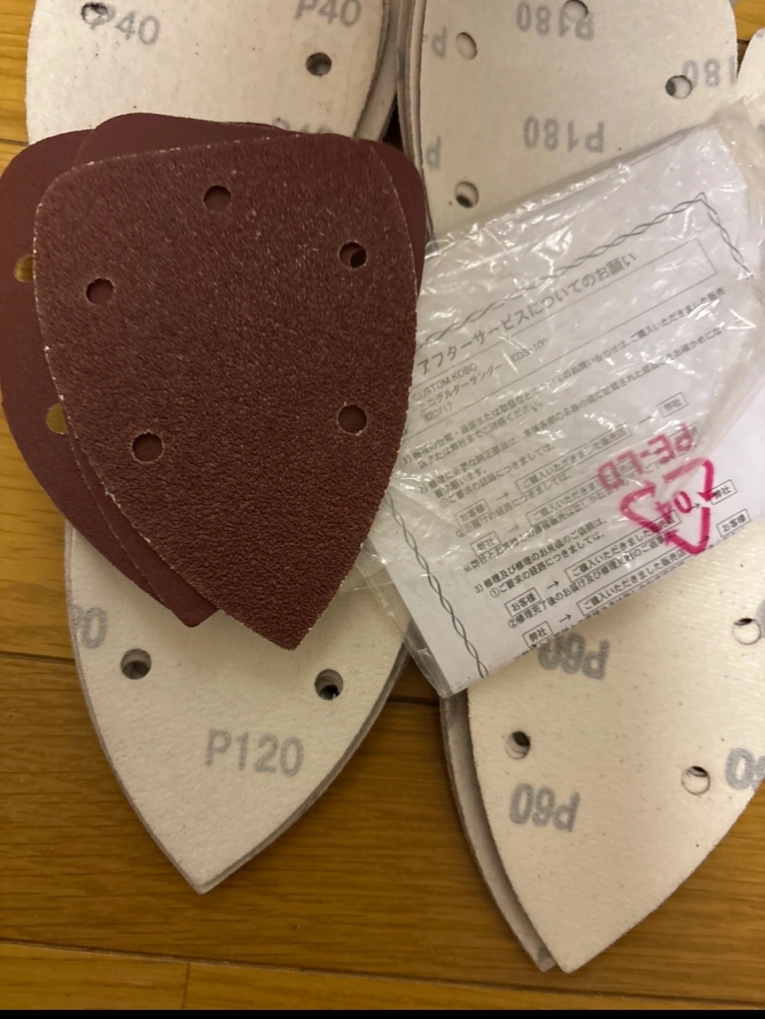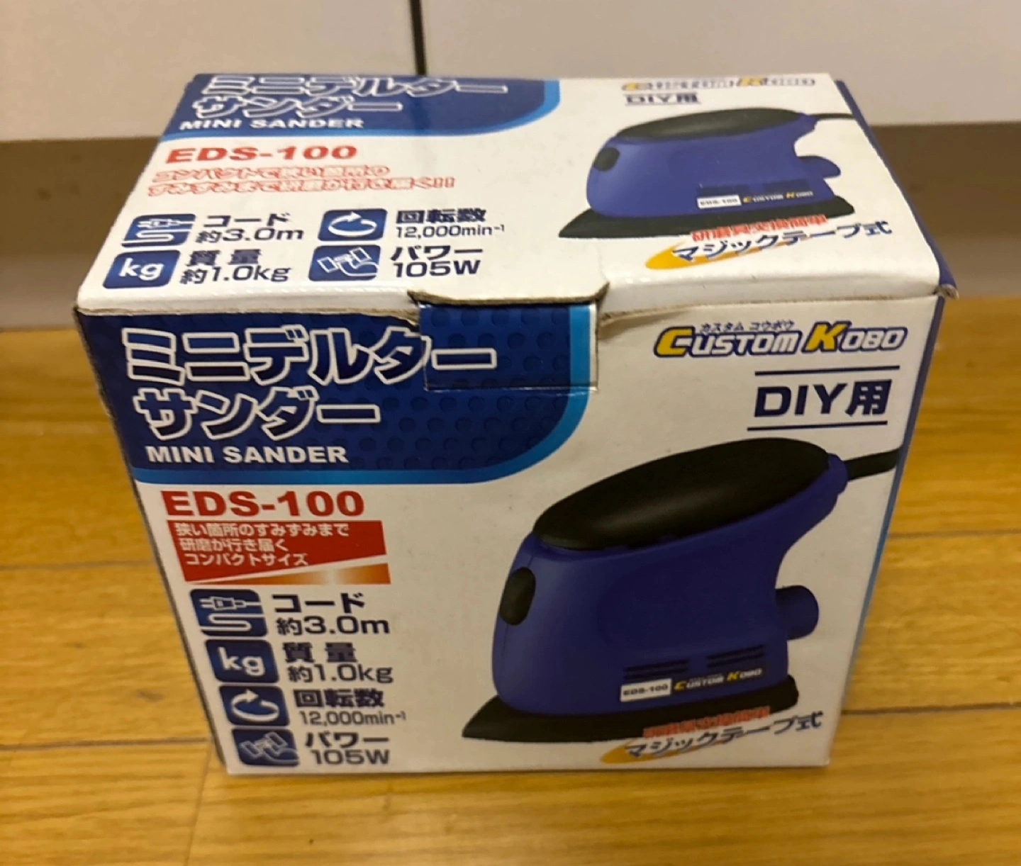 三共コーポレーションのミニデルターサンダー「EDS-100」です。 ほとんど使用していませんが、中古品の為 、使用に伴う細かな傷がございます。 ペーパー5枚 プレゼント致します # 240 8枚 #180 10枚(未使用) #120 10枚(未使用) # 80 10枚 # 60 10枚 # 40 10枚 詳しい状態は写真を参照ください。 【特徴】 ●ミニデルタサンダー。コンパクトで狭い箇所の隅々まで研磨が行き届く! コンパクトで狭い箇所の隅々まで研磨が行き届きます。コーナーの狭い箇所、面の小さい箇所の塗装はがし、サビ落とし、研磨など。 【仕様】 ●商品サイズ:H130×W160×D100mm ●重量:約1.0kg ●電圧:100V ●周波数:50/60Hz ●電流:1.1A ●電力:105W ●回転数:12000min-1 ●研磨具寸法:約φ125mm ●パット寸法:約φ123mm ●定格時間:20分 ●コード:約3.0m二重絶縁構造 よろしくお願いいたします。