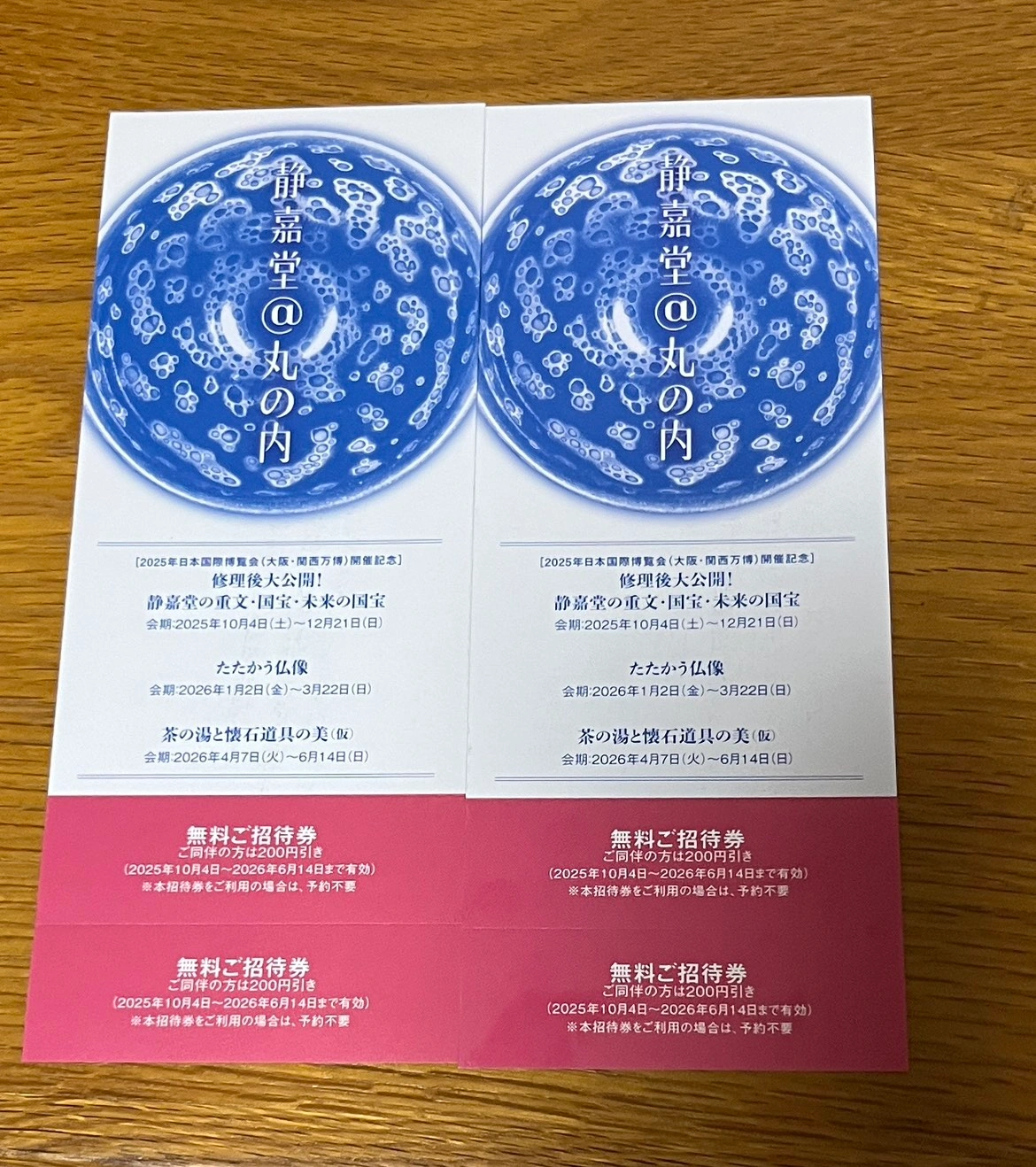 丸の内にある静嘉堂文庫美術館の チケットです https://www.seikado.or.jp/exhibition/schedule/ 2枚あり 1枚300円 2枚600円 1枚で2名無料 同伴200円引き 10月4日〜2026年6月14日まで有効 展示期間中3つの展示があります 画像参照 2名で行きたい場合 例えば2枚購入して未来の国宝、 茶の湯の回を見たりetc 人数や観たい企画により色々使い方あります 基本北千住手渡し 入谷、上野等相談可能です