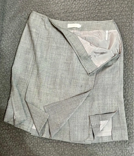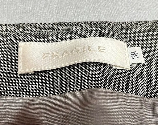 新宿伊勢丹で購入。 巻きスカート風のパネルデザイン、裾からベンツ開き状にあいているボックスプリーツ風で、大人フェミニンな印象。 ピンヒールを合わせるとクールビューティーなイメージです。 けっこうモテ服だと思います。 左サイドファスナー開き、ホック付き ブランド: 三陽商会「FRAGILE」 サイズ: 38、M相当 平置き測定詳細(約): 全長46.5-47cm ウエスト41cm 左右サイド、前の左右、後の左右、スソにそれぞれ開きあり 開き部分の裾からの長さ(約): 左右サイド145mm、前150mm、後120mm 状態: 汚れ無し。全体的に美品。 前左に1センチ前後のキズあり (アクセサリーの石の留め具が引っかかった表面的なもので、穴ではありませ ん。) 画像をご確認お願いします。 材質: 表 毛 52% レーヨン 48% 裏 キュブラ きちんと感のある材質に、レーヨン混紡で涼しい布地です。おすすめは春夏秋季。 プリーツは裏地付きで、ある程度の重さがあるため、風などでまくれ上がりにくいのもポイントです。 ひざ上丈が履けなくなったので、お譲りします! たたんで保管していますので、たたみシワ等ご理解ください。