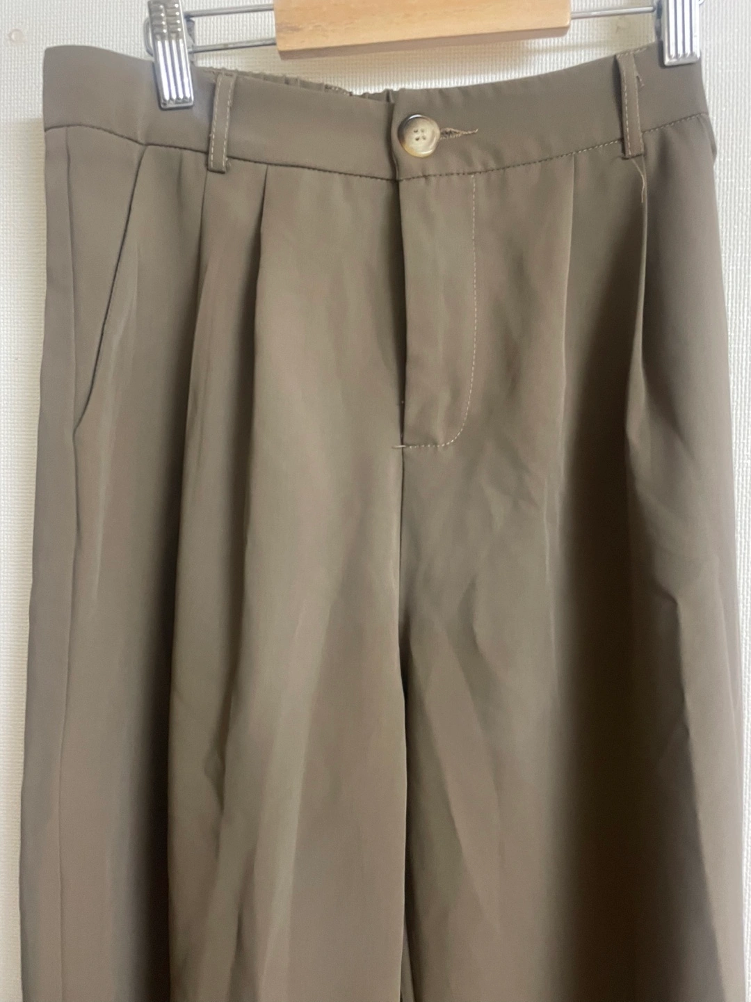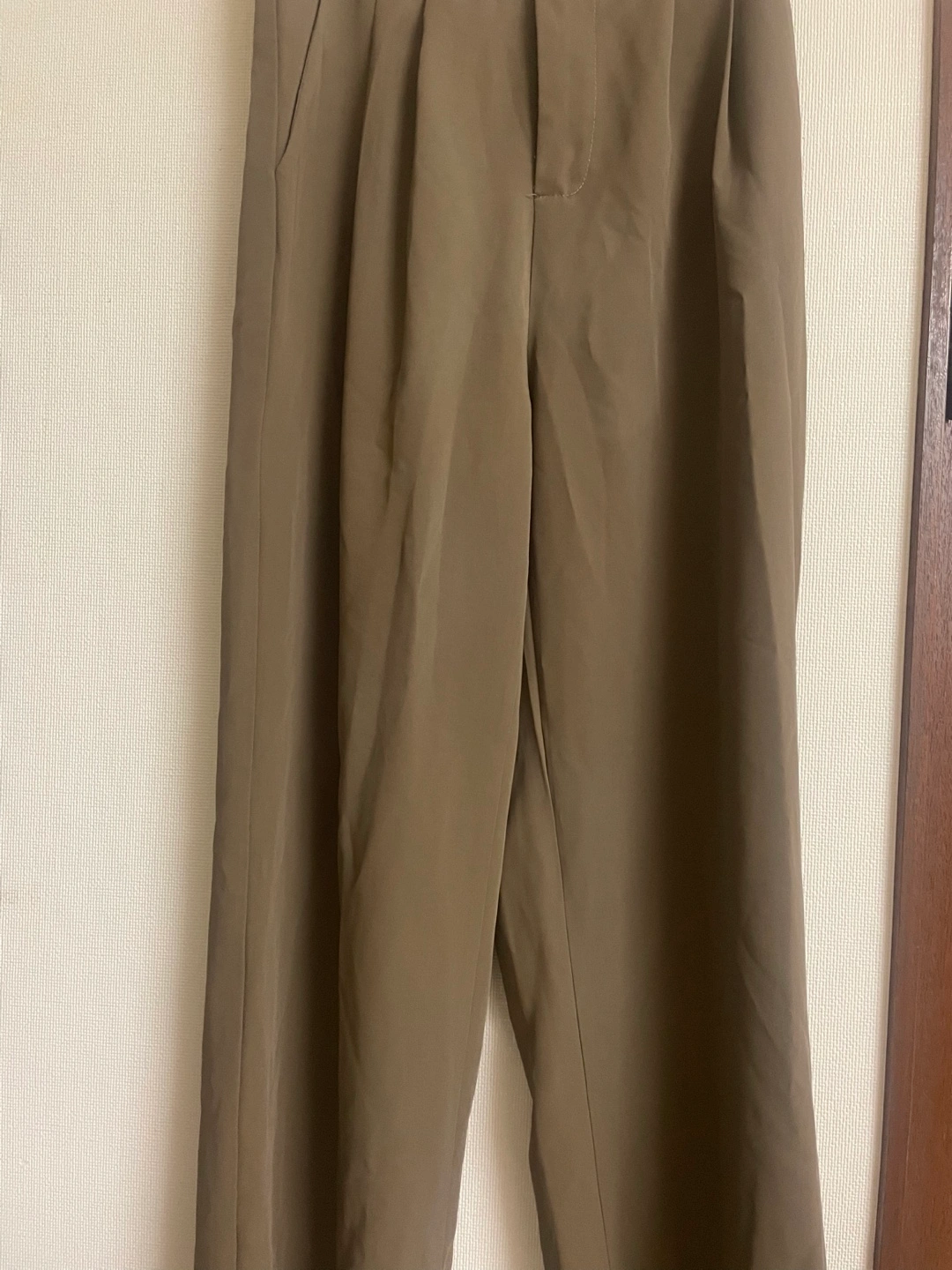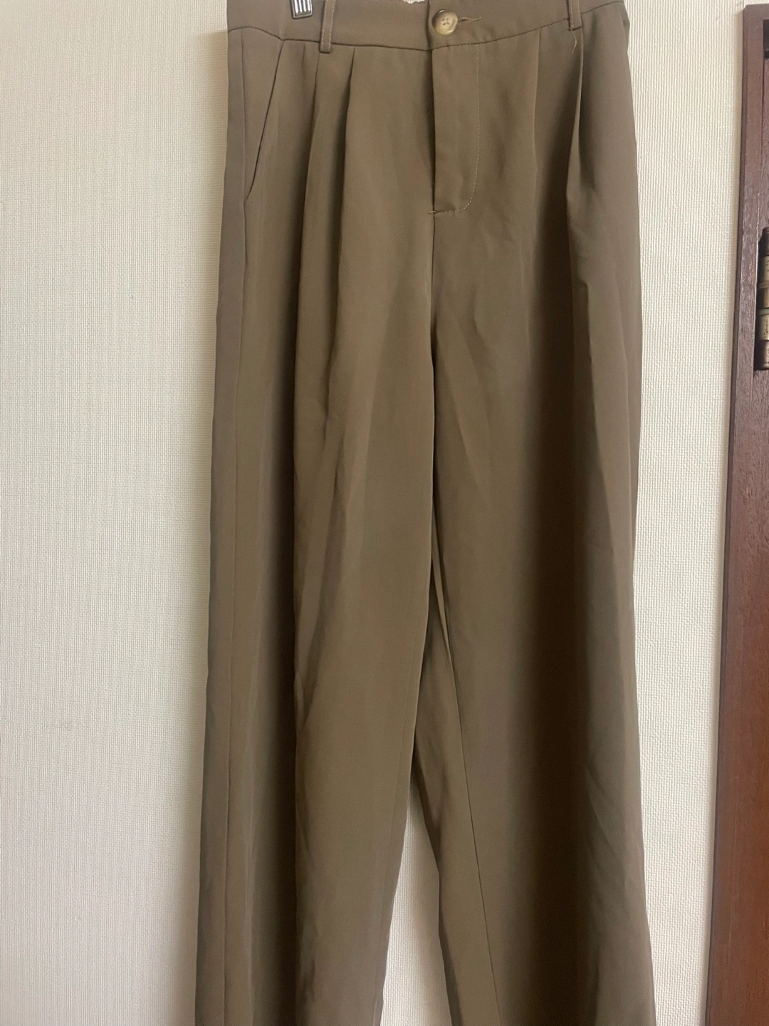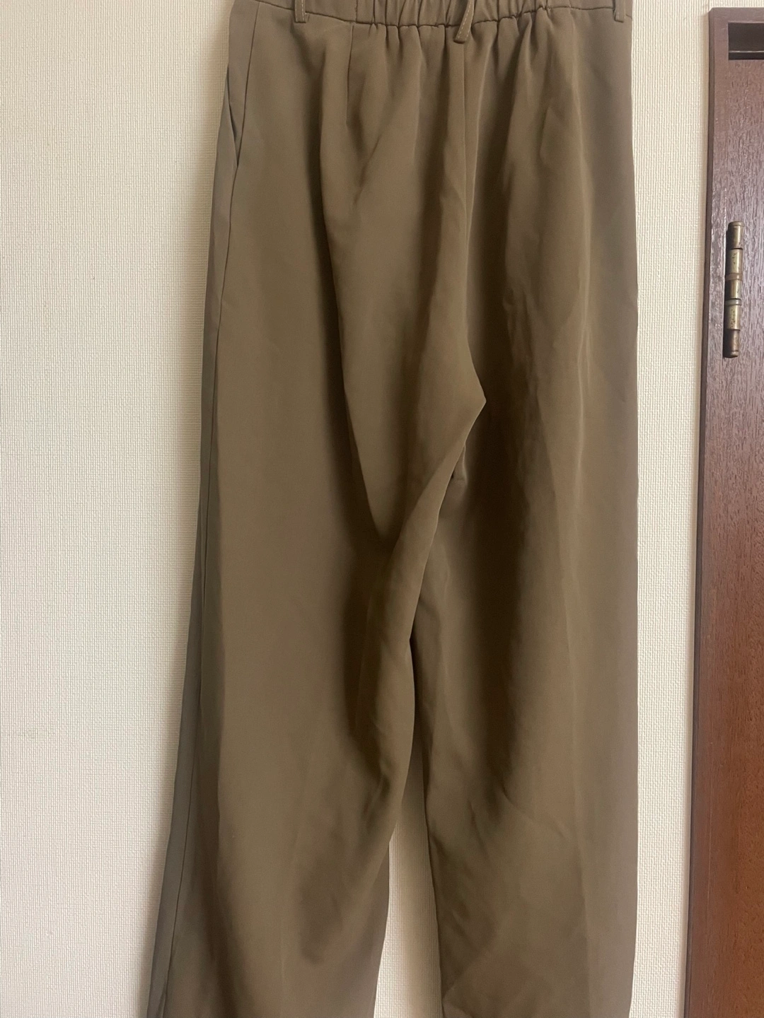 これからの秋にぴったりのカーキ色のストレートパンツ Mサイズ 自分の肌の色と色合いがあわず、 数回着用し、自宅保管していました。 ウエスト後ろはゴムになっているので履き心地はよく、生地も肌触りよくスルッとしています。 フロントのタックが縦ラインを強調し、スタイルアップ効果も。 カジュアルにも綺麗めオフィススタイルにも両方着回し可能です。 ブランドは不明です。 洗濯方法はタグをご確認ください。 ウエスト幅約30センチ 丈96センチ 太もも股下幅約32センチ ウエストから股下まて約31センチ もも、ふくらはぎ横幅24センチ ウエスト幅約30 丈96センチ 太もも股下幅約32センチ ウエストから股下まて約31センチ もも、ふくらはぎ横幅24センチ