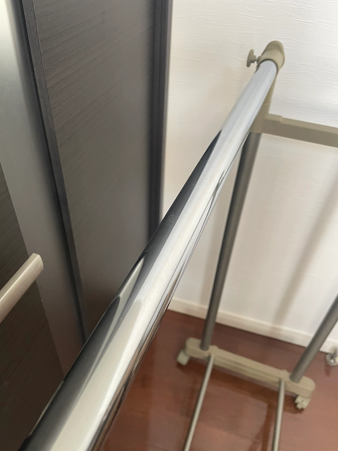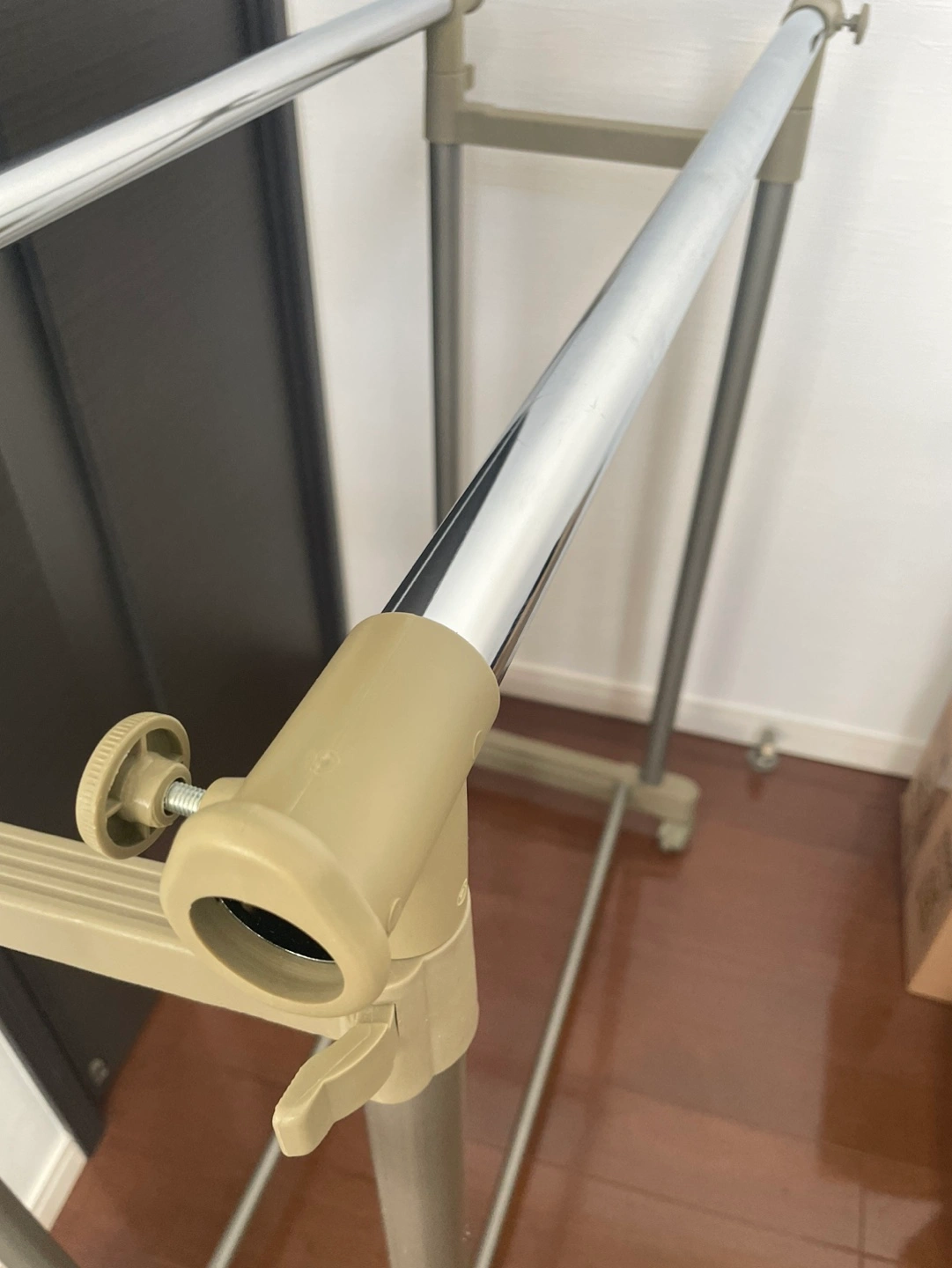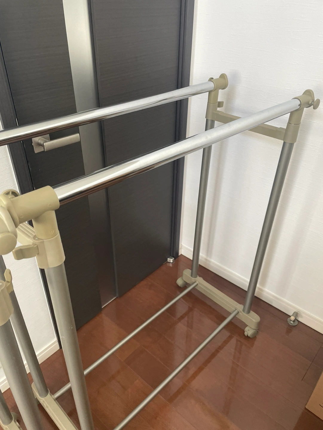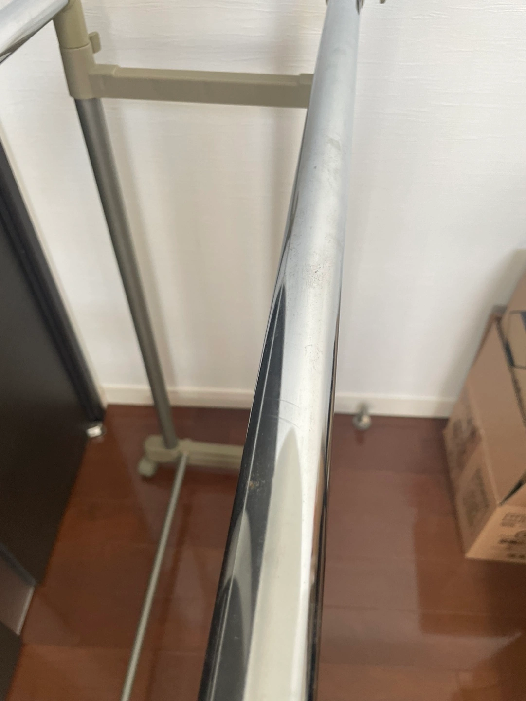 可動式のスチール製ハンガーラック、シルバーとベージュのコンビネーション。 - タイプ: ハンガーラック - 素材: スチール - 色: シルバー/ベージュ - デザイン: シンプルな構造 - 特徴: 可動式/組み立て式 - 用途: 衣類収納 サイズ:縦90cm 横35cm 高さ100cm 高さ調整可能。上まで上げて段差をつけれます。 こちらは前の物よりも傷が少ない汚れは少ないです。こちら部品不要製品です。 【お渡し場所】ファミリーマート大田千鳥3丁目店前 【取引日時】金曜、日曜を除いた平日昼間〜夕方まで 監視カメラがある場所なので夜でもかまいません。 上記の条件に合わせてくださる方を優先させていただきます。(早いもの勝ちではありませんのでご了承ください)