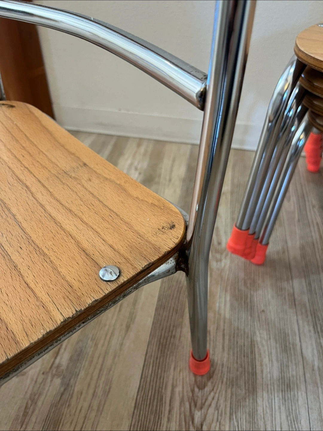 保育園で使用していたキッズチェアです。 合計14脚あります。 中古品ですので傷、サビ、汚れはご了承ください。 使用可能です。 14脚すべてお引き取りいただける方を優先いたします。 引き取りは平日10時〜17時までにお願いします。
