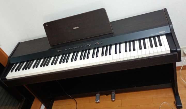 ヤマハYDP88電 子ピアノ 動作品。不具合なし。 1995年頃に購入。 あまり弾かずに保管していました。 付属の椅子(中古)は欲しければあげます。説明書あり。 専用ヘッドホンつき。 ヘッドホン端子が特殊なので普通のヘッドホンは適合しません。 横幅→134センチ。奥行き42センチ。高さ78センチ。 プラスドライバで土台を解体しても幅134センチは変わりません。 積めるスペースのある車をお持ちの方に。 当方の車は小さくて積めなさそうなので軽トラなどで 引取お願いいたします。 本体に経年感傷あり。カバー汚れあります。 コンセント電源です。 鍵盤を弾くタッチの強弱により、演奏に表情をつけることができます。 メトロノームを装備しており、レッスンなどで有効にお使いいただけます。 自分の演奏を録音したり、再生させることができます。