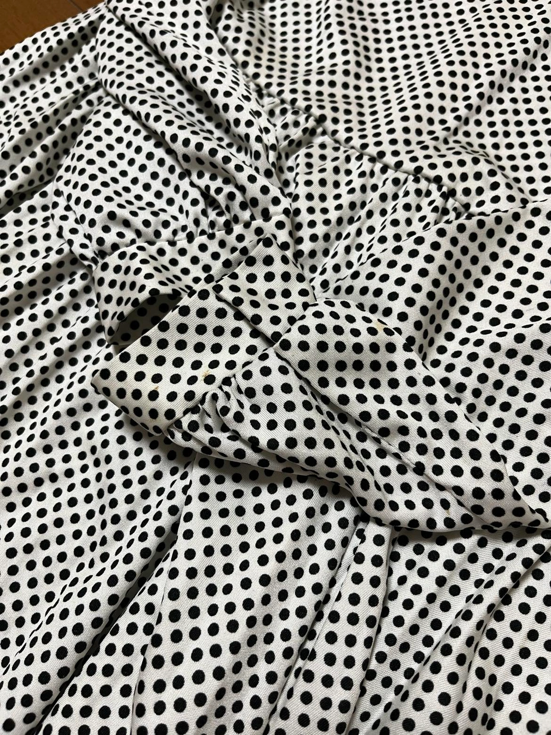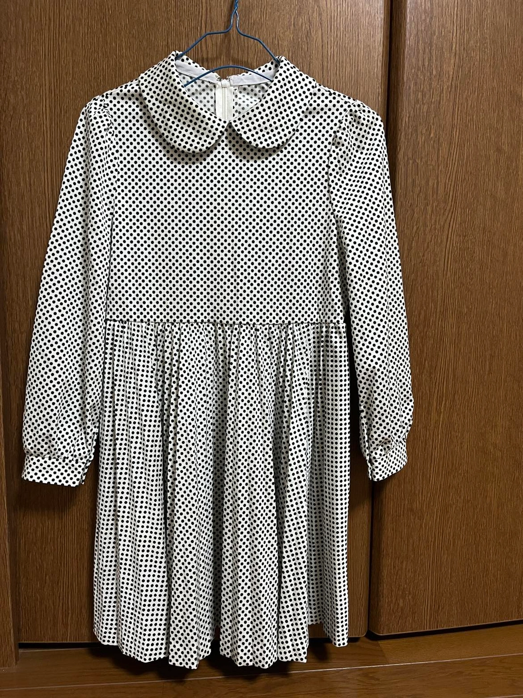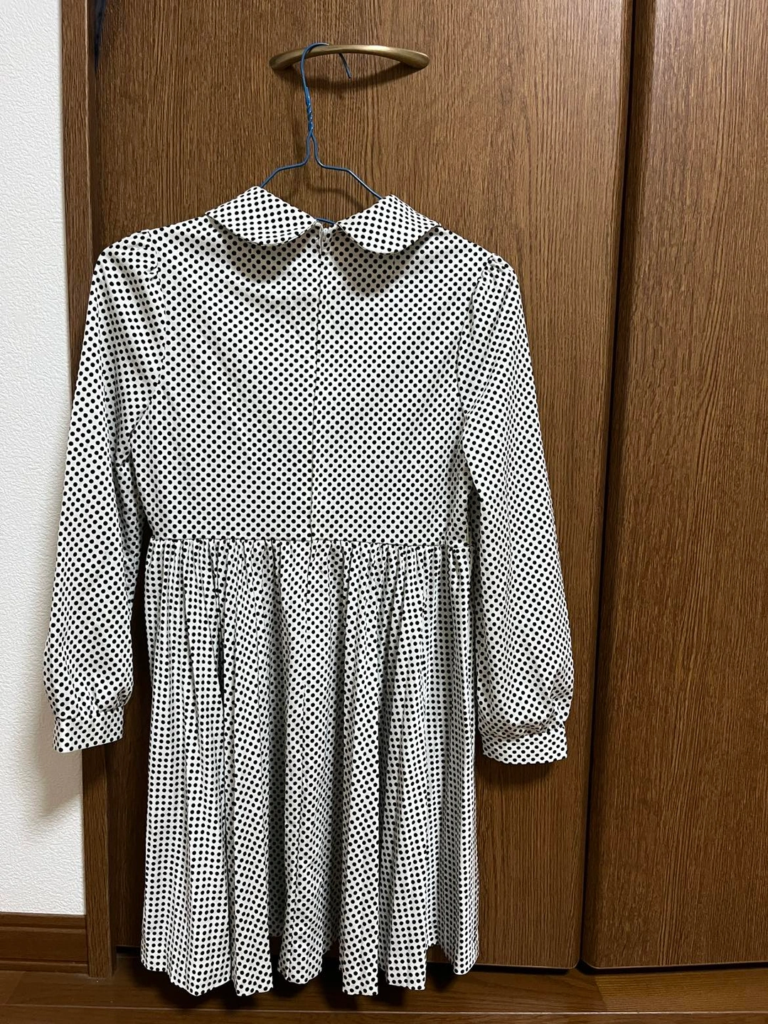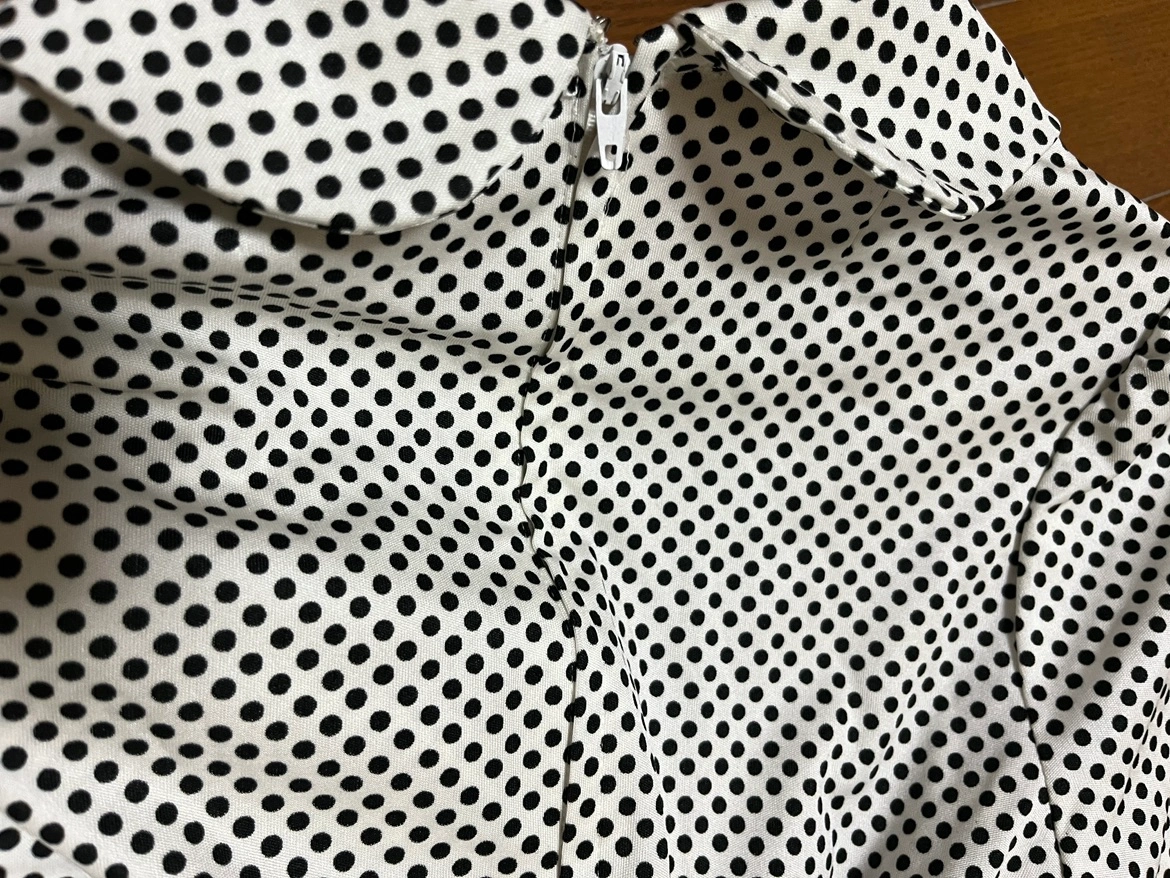 中古の水玉模様のワンピースです🎶 とても可愛くノーアイロンで着られます 普段着からちょっとしたお出かけにも ポリエステル100% YKK後ろチャック着脱 ミカレディ 総丈74 袖丈48 ウエスト平置き33.5 肩幅30.5 袖にわからない程度のシミあり 参考 https://store.shopping.yahoo.co.jp/zozo/92453393.html?sc_i=shopping-smartphone-web-detail-item-rcmd_v2v-item 120や130サイズくらいが適応だと思われます 基 本北千住 その他取手松戸入谷上野等応相談