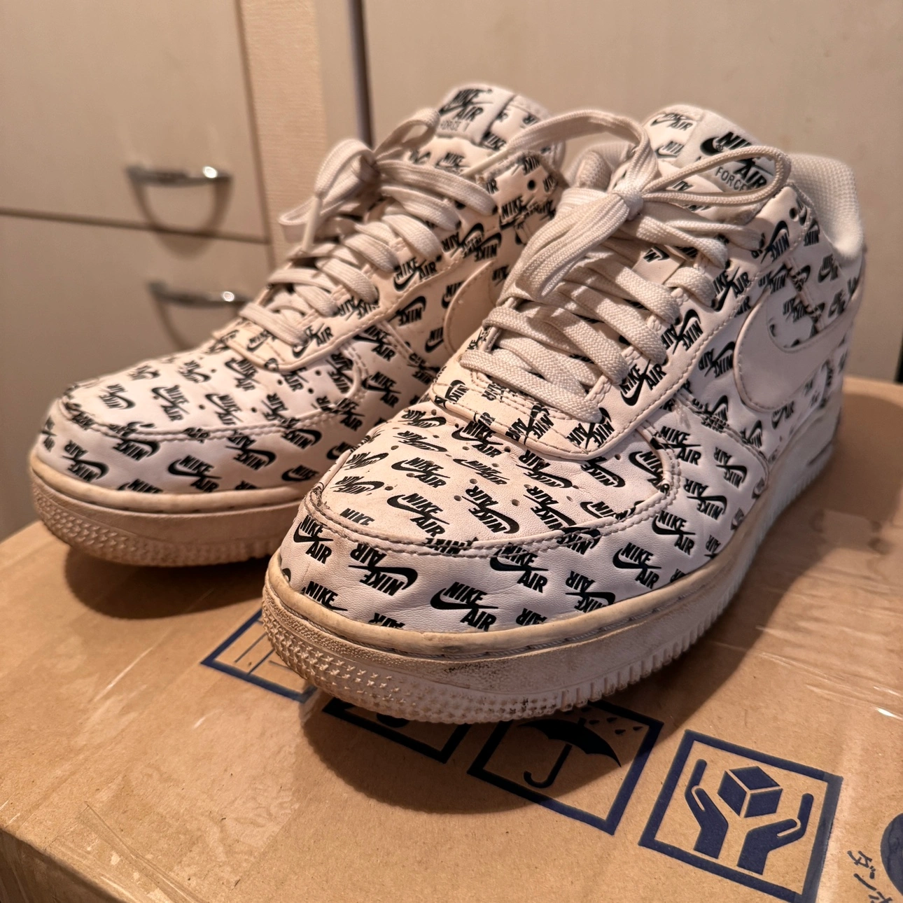 NIKE エアフォース1 オールオーバーロゴ 自宅保管。中古品。 ホワイトなので、黄ばみがあります。 引越しのため、譲ります。 ご理解の上をお願いいたします。 渡せる場所は下記のみになります。 セブンイレブン中野中央三丁目店 https://maps.app.goo.gl/jkx6LJxVUjj9iyQE7?g_st=ic ⚫︎ 丸の内線 新中野駅より6分 ⚫︎中野新橋入り口近い 6月12日までお願いします。