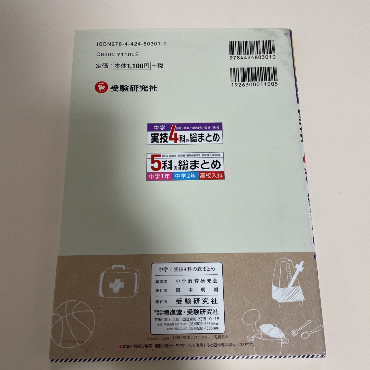 「中学実技4科の総まとめ」 中学教育研究会 定価: ¥ 1100 裏表紙の角に黒い汚れ(写真3枚目参照)がありますが、他は未使用同然のきれいさです。 #中学教育研究会 #本 #その他/その他