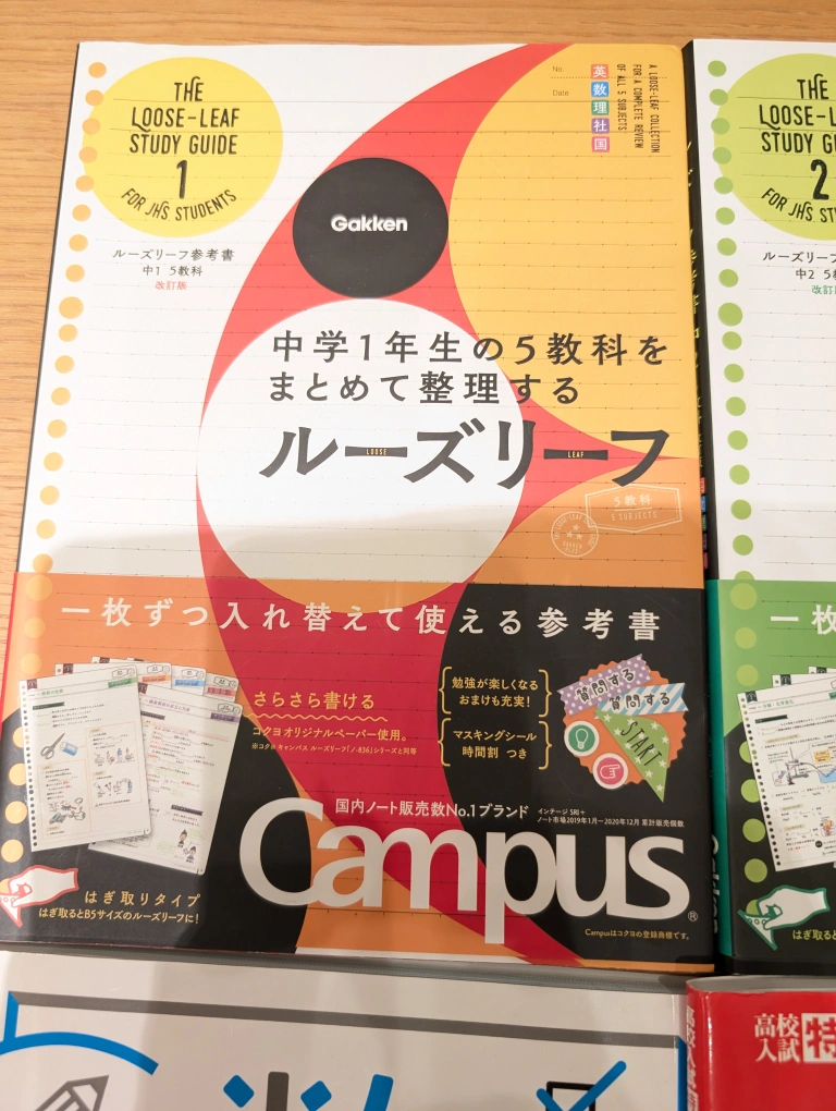 ・ルーズリーフ参考書 ・中学1年生、5教科 ・改訂版 ・未使用 ・マスキングシールつき