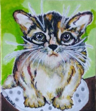 近所の子ネコちゃんをモデルに描きました。 猫好きな方に捧げます。 ●キャンバス F3号 ご希望の方はお気軽にご連絡ください。