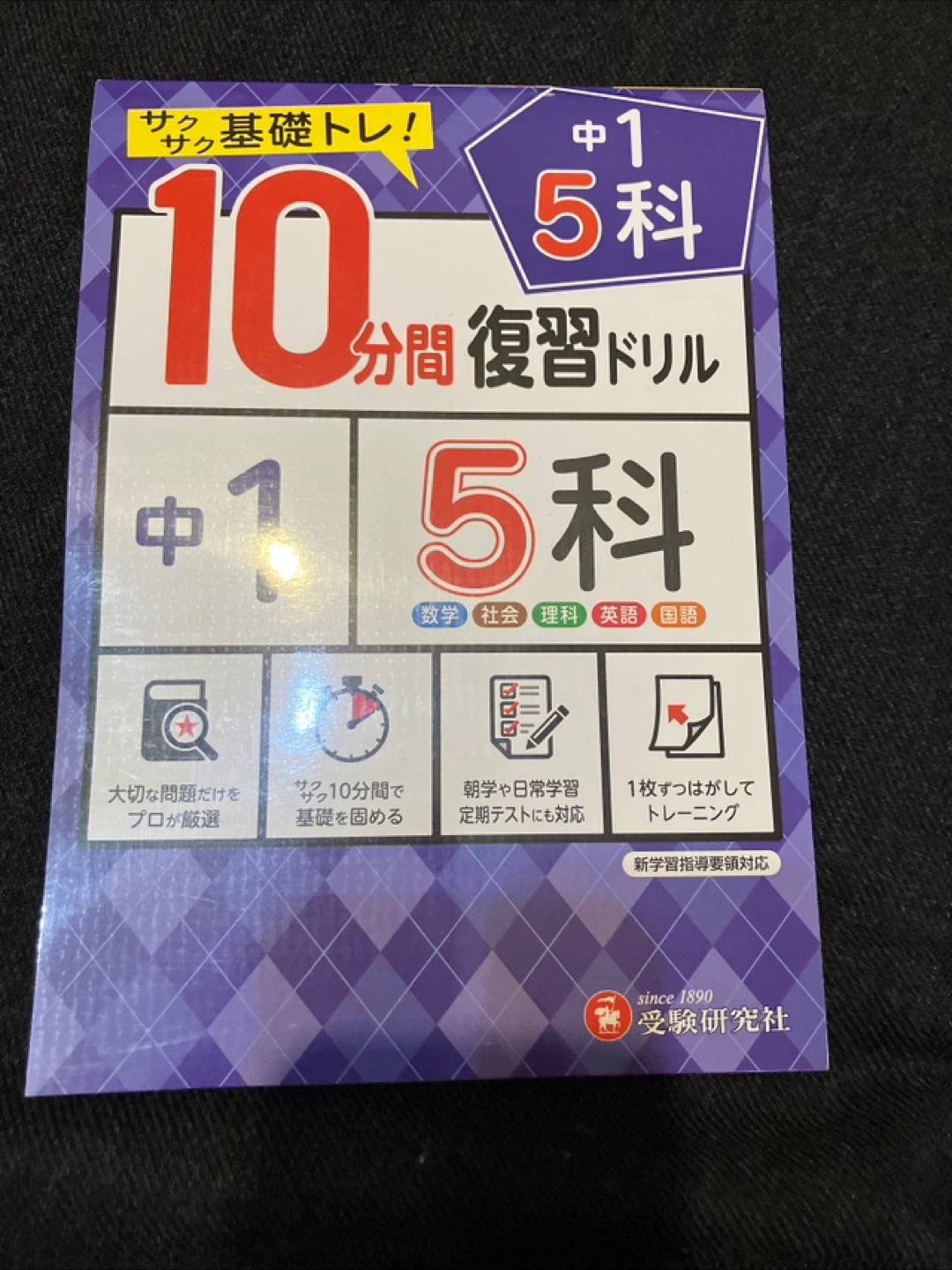 ・中1、5科 ・10分間復習ドリル ・受験研究社
