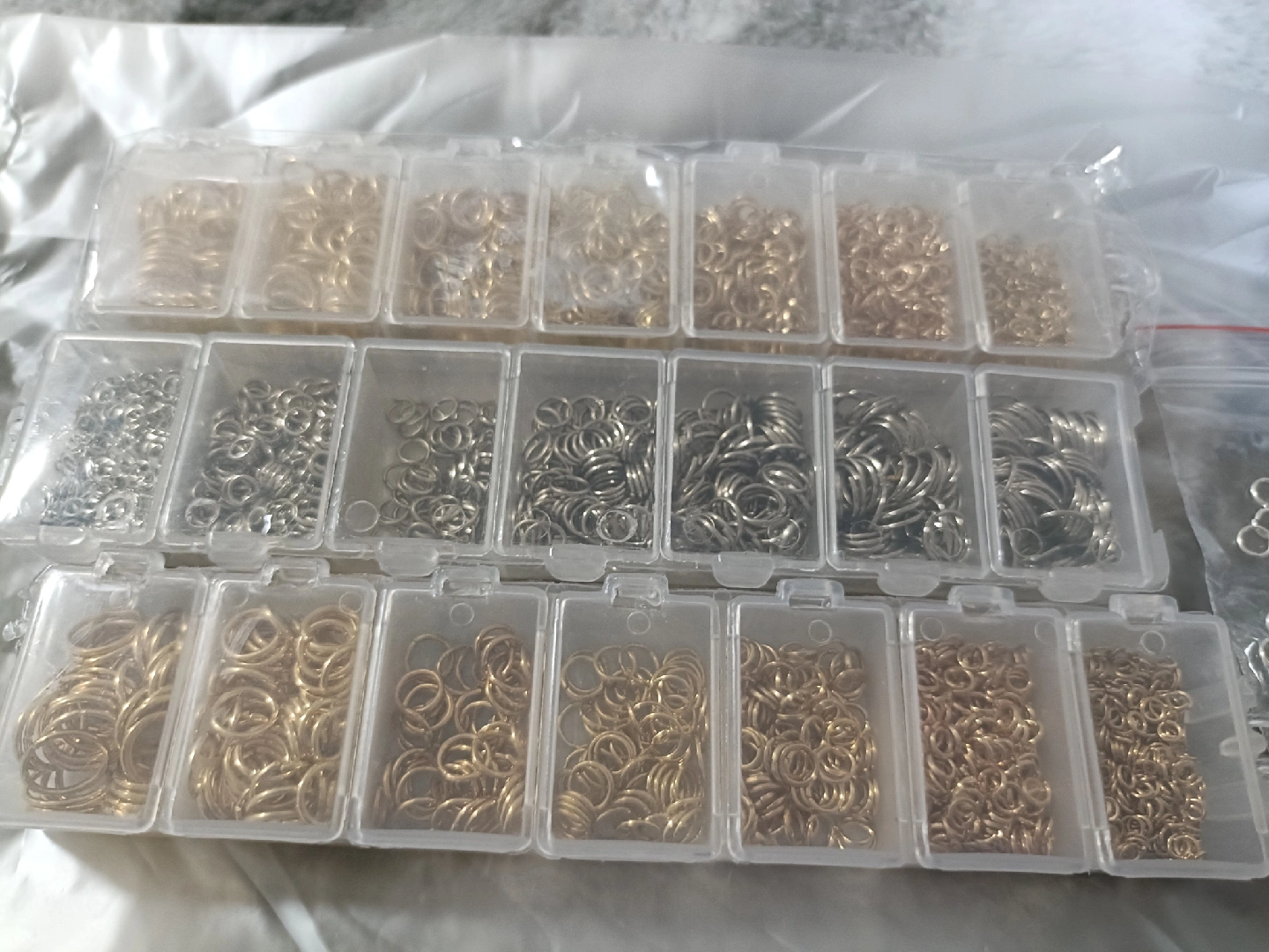 ⟡.·*.··············································⟡.·*. ◆ 丸カン まとめ売り ◆ 各 サイズ違いの丸カン入り ハンドメイドパーツになります。 目立った汚れは無いと思います。 ※ 使用しました。 使用した丸カンに関しては 全く違うサイズの丸カンが 別サイズの丸カンの所に 混入している可能性あります。 未開封は、一つだけ有ります。 他は、開封した丸カンです。 ご理解いただける方で 宜しくお願い致します。 ⟡.·*.··············································⟡.·*.