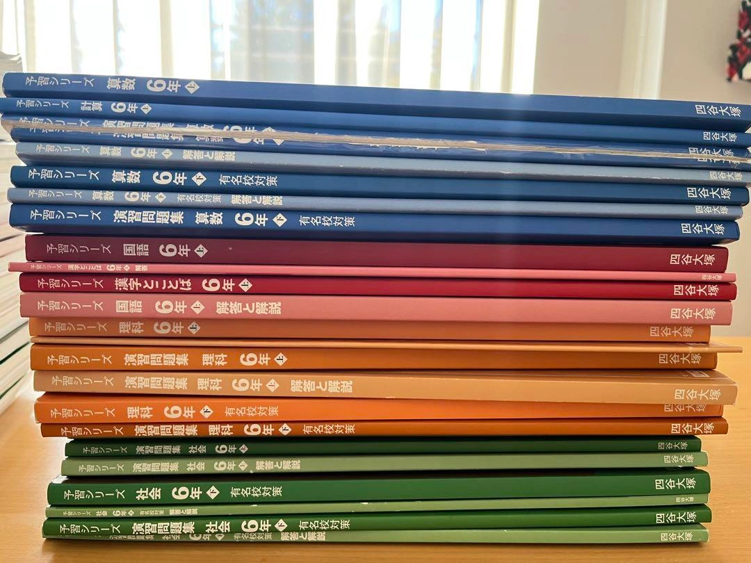 四谷大塚の予習シリーズ 6年 算国理社 定価だと1冊1540〜1980円です。 算数以外は書き込み少ないと思います。 図形への書き込みや正誤のマークなどが主で、途中計算などはほとんど書き込んでいません。 ですが、使用済みということをご理解頂いた上でご検討ください。 算数の演習は問題と解答解説を切り離してあります。 名前は修正テープで消してあります。 4年、5年も出品しています。 ご希望の方はお気軽にご連絡ください。
