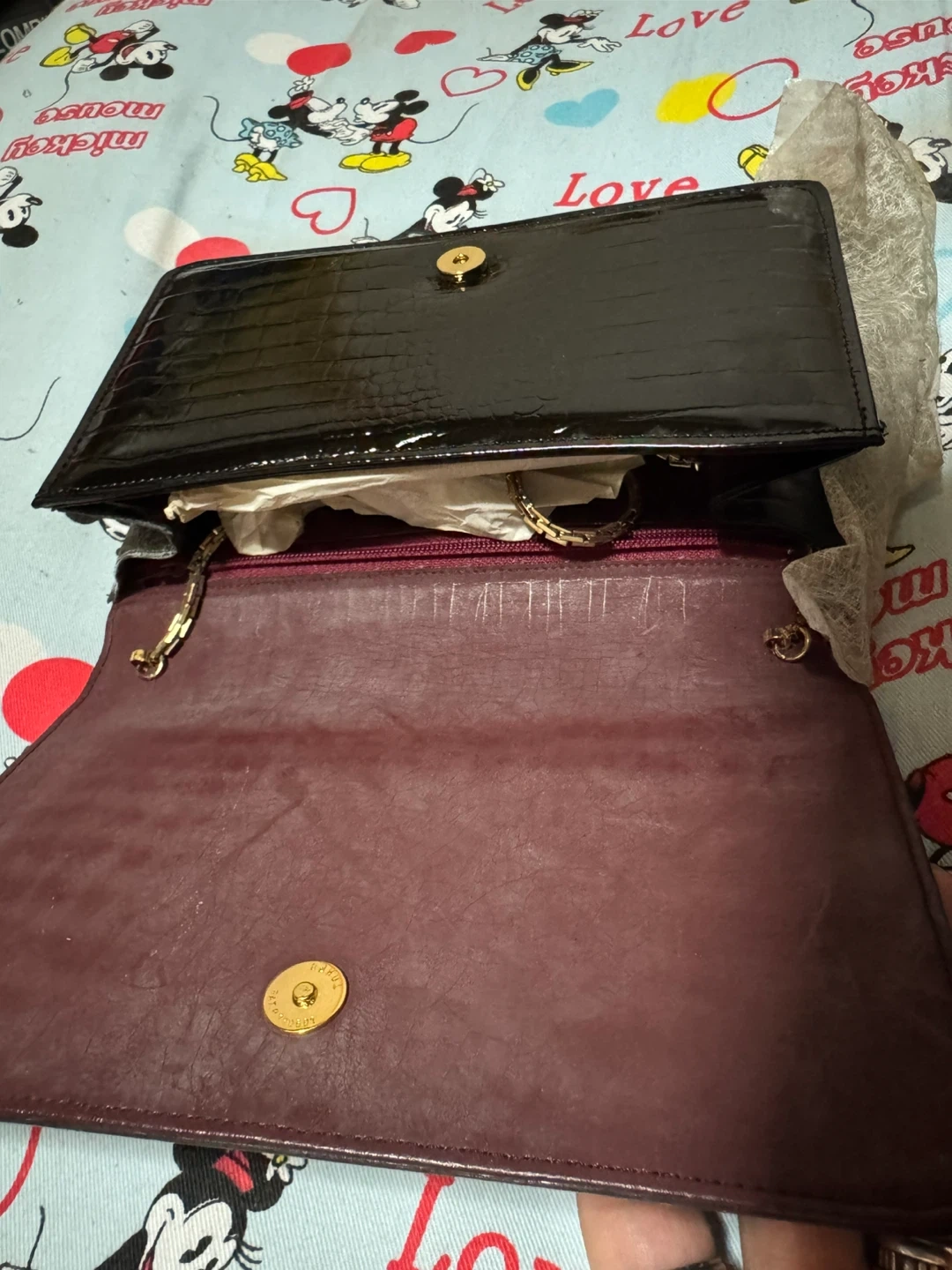 ショルダーバッグです ・カラー:ブラック ・素材:エナメル ・内部カラー:ボルドー ・チェーン付き 中古品であることご了承ください