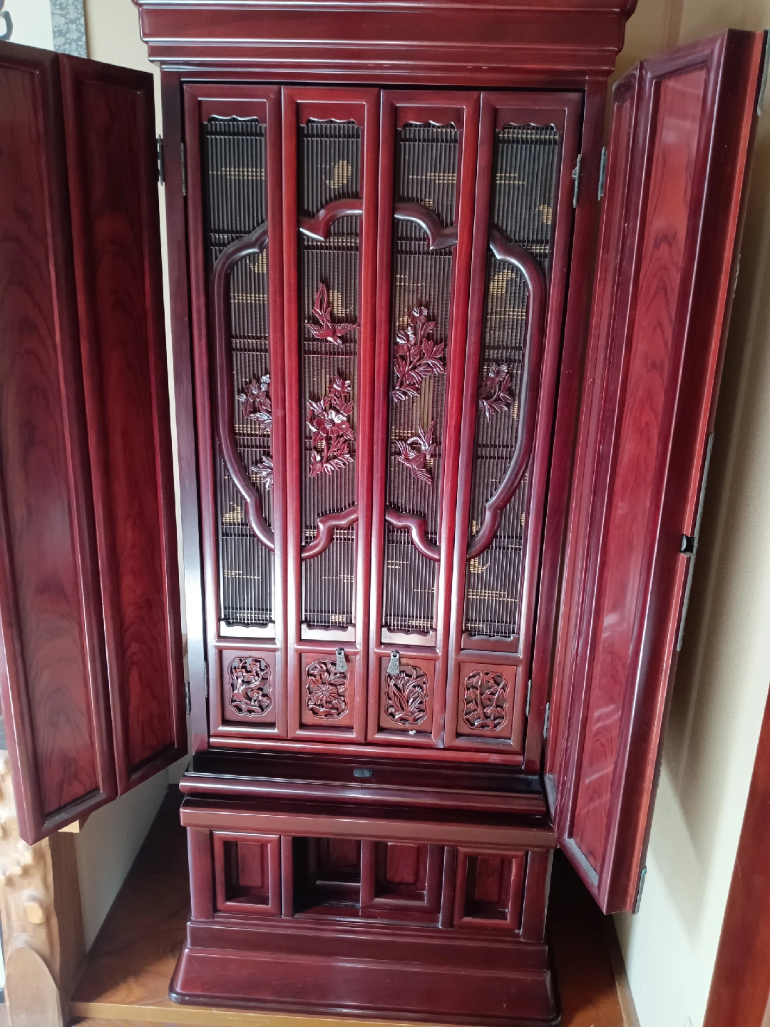 太陽光でエンジ色に見えますが、実際はもう少し暗めの茶色です。 下の段と分けて運搬できます。 取りに来て下さる方に差し上げます。 銅の部分に緑青が見られます。 仏壇を引き取って下さる方には仏具も差し上げます。 仏具のみの方は500円にてお譲りします。 【情報】 種類:仏壇 型番:九州型 サイズ:48✕62✕150cm 【状態】 使用感はあります。一部キズがあります。 中古品であることご了承ください