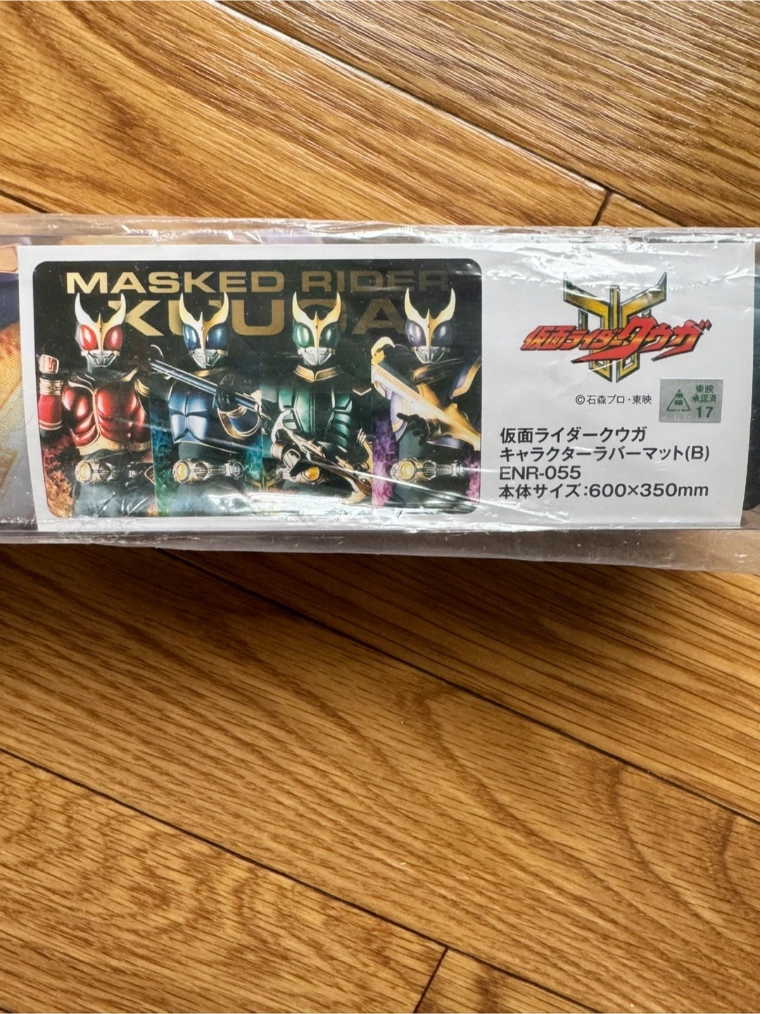 仮面ライダークウガのラバーマットです 【情報】 種類:キャラクターラバーマット ブランド:仮面ライダークウガ 型番:ENR-055 サイズ:600×350mm 新品、未使用ですが、自宅保管のため、神経質な方は、ご遠慮願います。 受渡し場所…ファミマ町田能ヶ谷町店もしくは鶴川駅(北口、南口どちらか)改札前でお願いします。