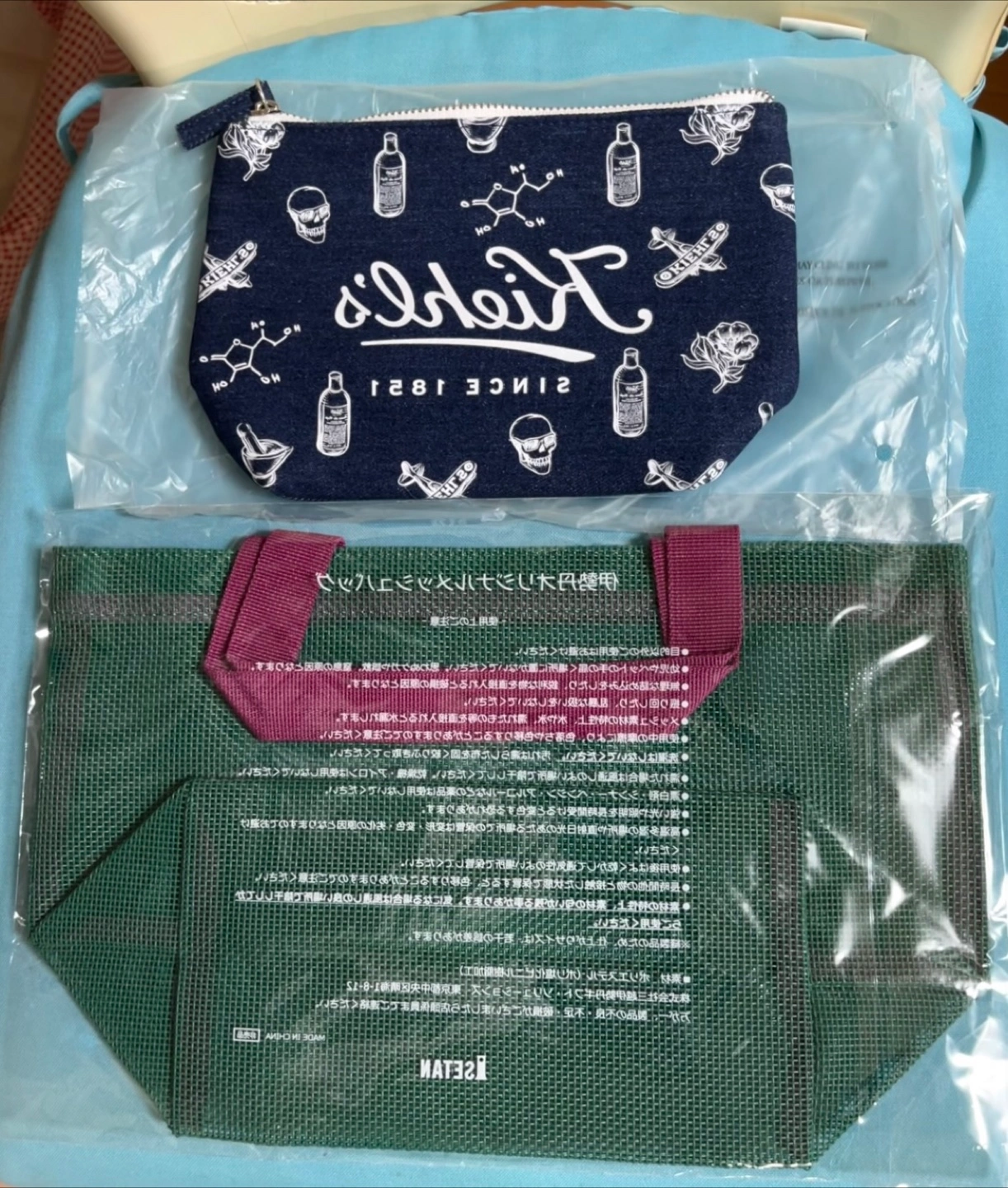◉伊勢丹オリジナルメッシュバッグです。 新品未開封です。 ポリエステル製のエコバッグ、広めのマチで使いやすそうです。 - ブランド: 伊勢丹 - 素材: ポリエステル - サイズ: タテ20×ヨコ32×マチ12cm(持ち手含みません) - 色: 緑×赤紫 ◉Kiehl's キールズ ポーチ 新品未使用です。 デニム生地にKiehl'sのデザインが施されたポーチ。 - ブランド: Kiehl's - デザイン: デニム生地に印刷されたスカル、ボトル、飛行機などのイラスト - ファスナー: 金属製のジッパー - サイズ: (約)縦10cm 横21cm マチ6cm 自宅保管品にご理解のある方のご購入をお待ちいたしております。