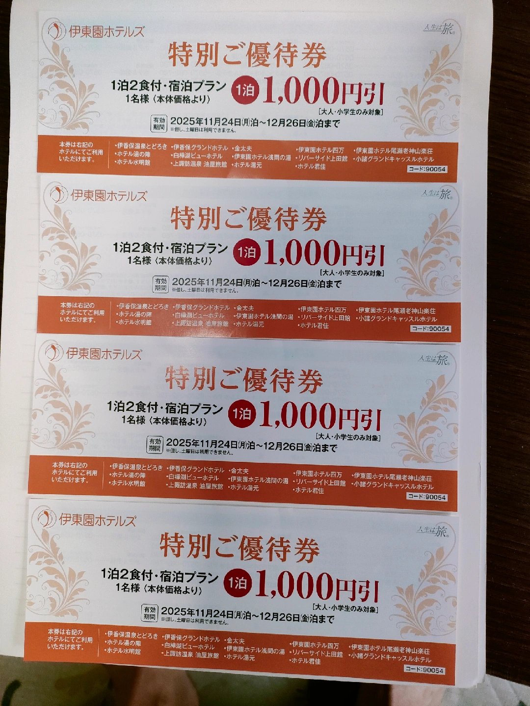 伊東園ホテルズ 宿泊優待券 1000円引