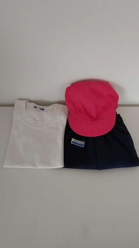 小学校1~2年生用の体操服セットです。 数年間使用しましたのでそれなりの使用感はあります。 ズボンの後ろポケット部分の名前シールが上手く剥がせなかった為、一部シールが残っています。 同じ部分に名前シールを貼られるのであれば問題ないと思われます。 お尻部分には多少の毛玉があります。 シャツは全体的に使用感あります。 帽子はあごのゴム紐を切った状態でお渡しします。 新しいゴムをお付け下さい。 帽子の白側に記名がありますのでマジックで消してからのお渡しになります。 中古品であることをご理 解頂ける方のみ宜しくお願い致します。