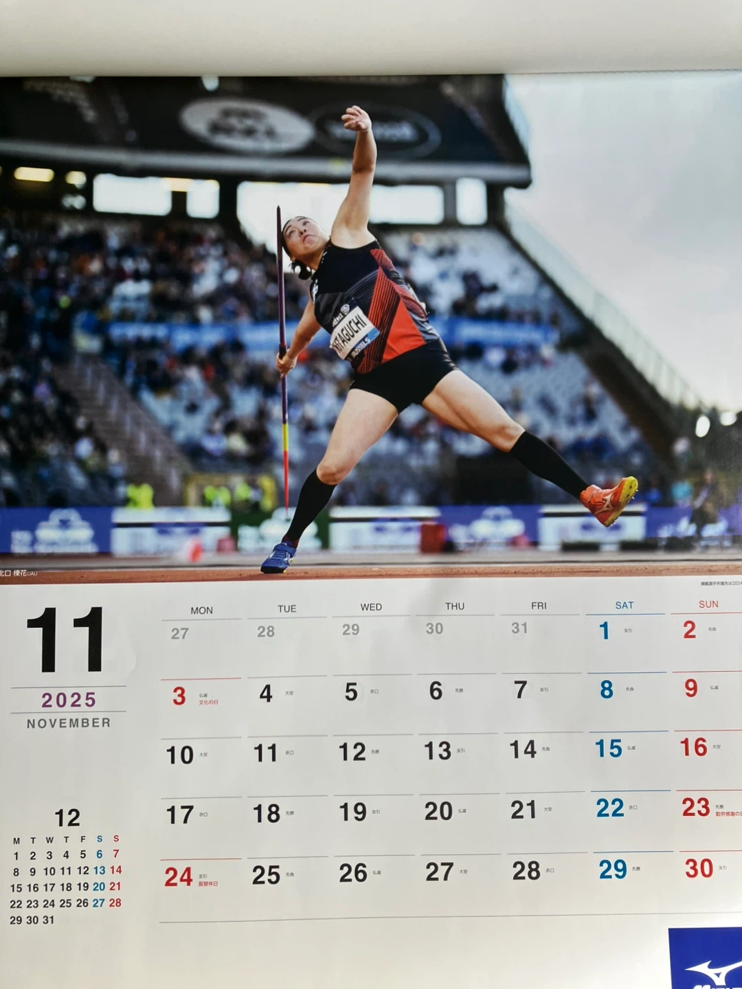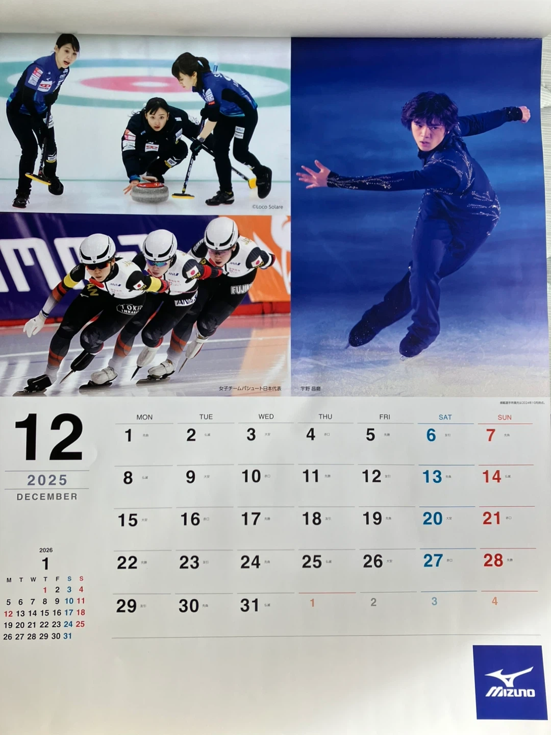 ミズノの2025年カレンダーです 残り2ヶ月半ですが、片付けしてたら出てきました。スポーツ選手でお気に入りの選手がいらっしゃったらいかがですか? ・2025年のカレンダー ・スポーツの写真入り ・ミズノのロゴ入り 中古品であることご了承ください