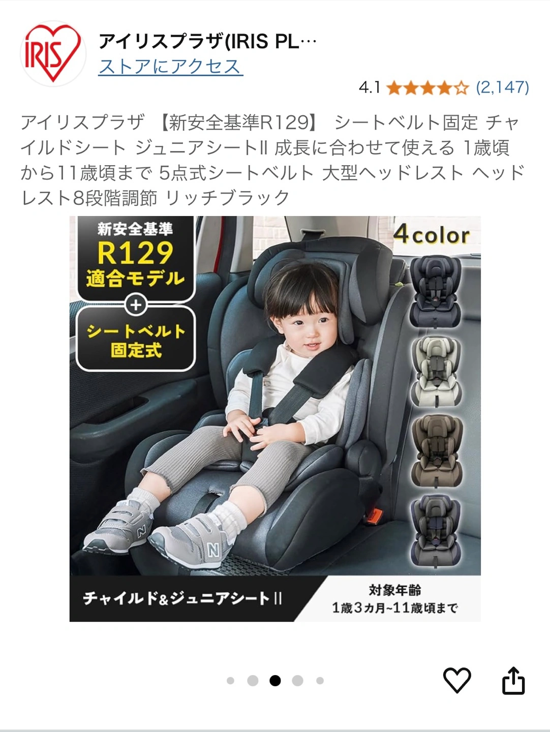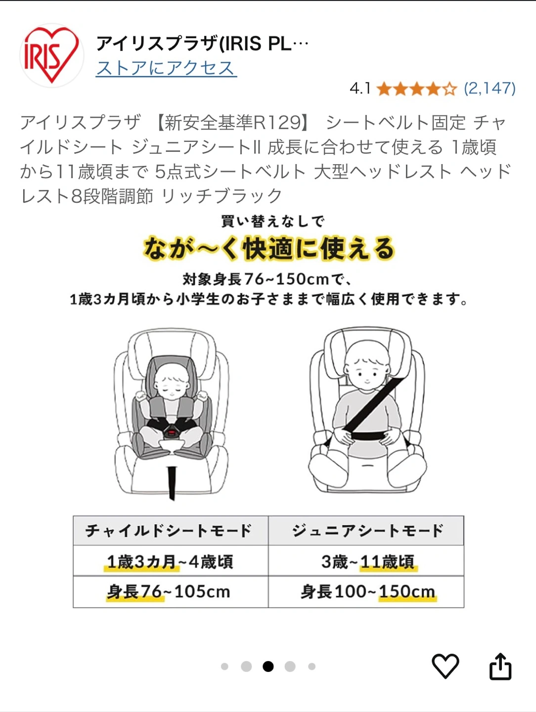 ・シートベルト固定 ・対象年齢:1歳頃~11歳頃 ・5点式シートベルト ・ヘッドレスト8段階調節 ・カラー:ブラック ほぼ未使用です。 0歳から使えるものに変えたため、こちらを使用しなくなりました。使用回数は一回です。ハウスクリーニングのみなので、ご了承いただける方のみよろしくお願いいたします。 値下げしました。が、値下げ交渉可です!