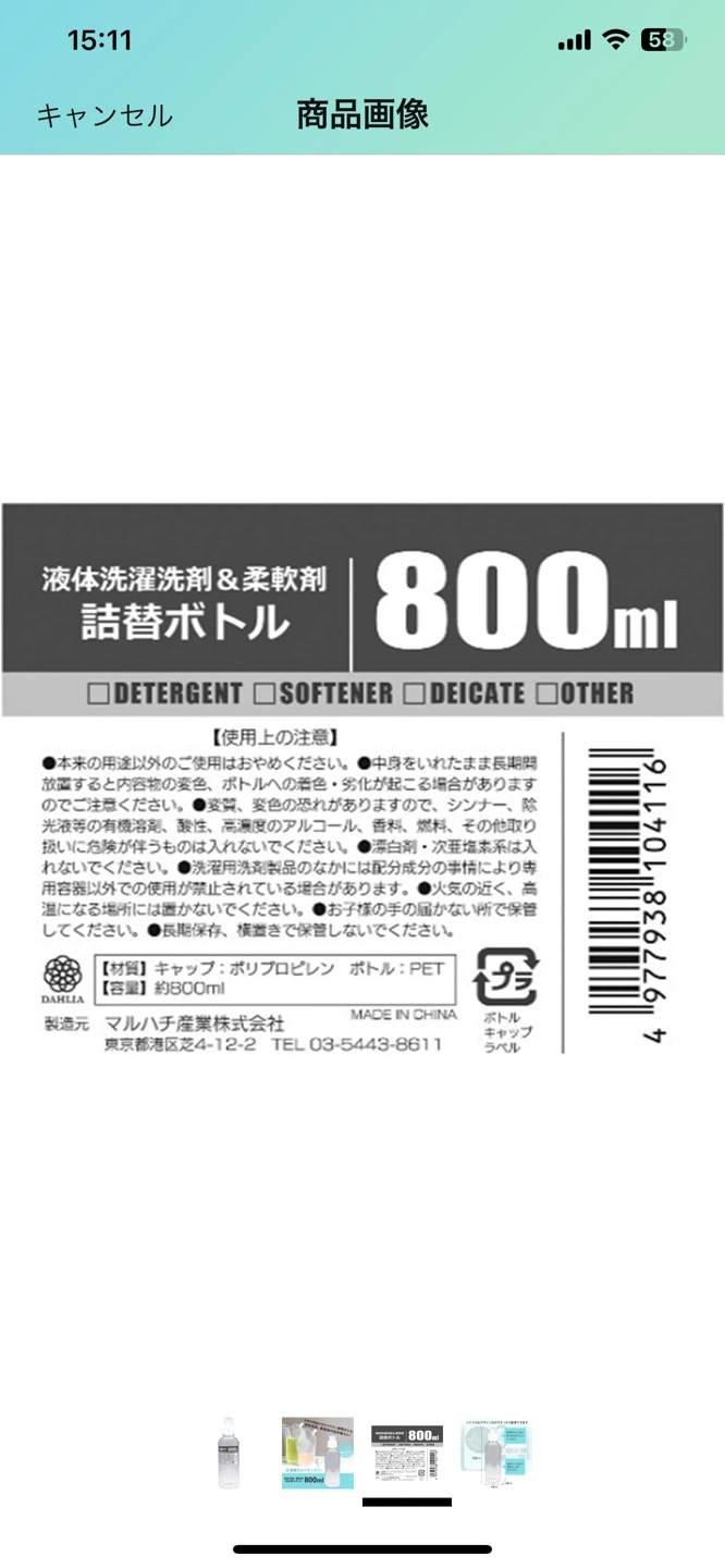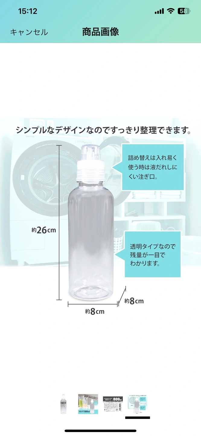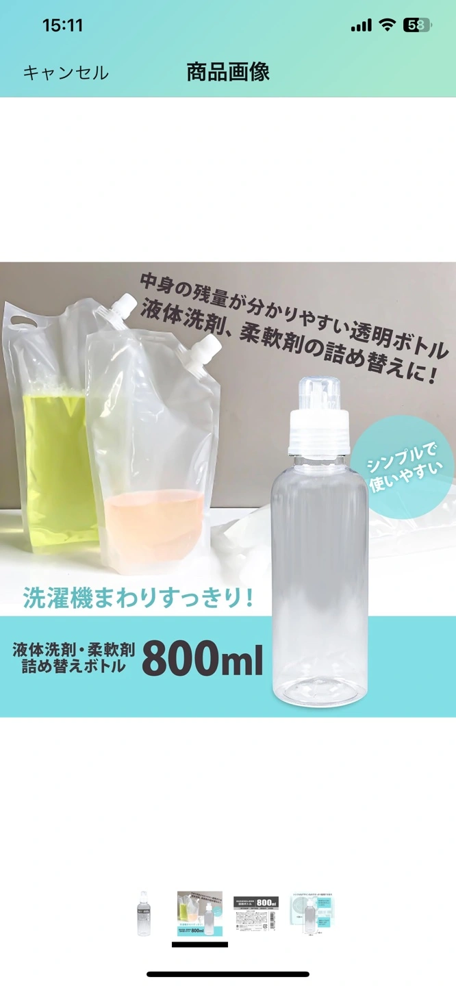 柔軟剤や洗剤などを詰め替える透明ボトルです。 柔軟剤が詰め替えできるボトルで、 ①透明(クリア) ②800mlの大容量 は、大変レアで珍しいです。 (100均などは大きくても500mlが多いかと) しょっちゅう詰め替えるのが面倒な方や、中身が見えなくて残量が良くわからなくてお困りの方にはオススメの商品です◎ ◆他にも色々出品しておりますので、ご覧頂ければ幸いです。(まとめ買い大歓迎なので、複数ご購入頂ける方には、おまけさせて頂きます☆