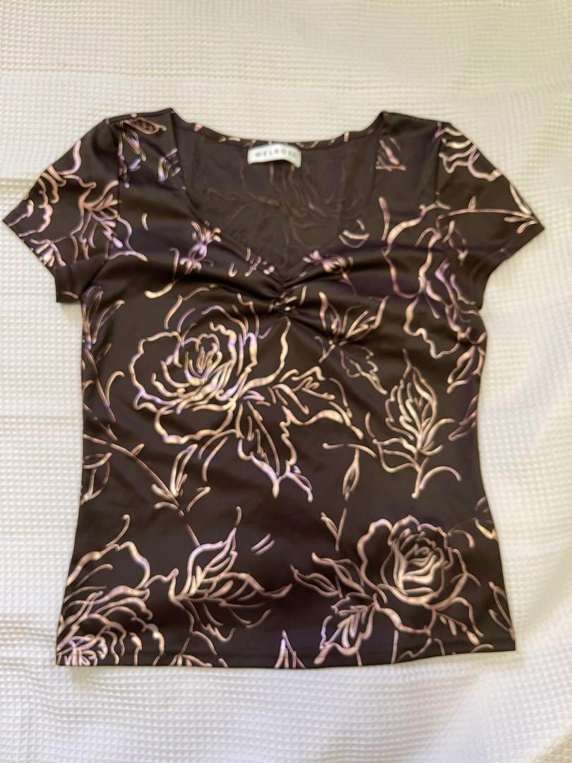 H&M ダブルリボン付きベージュオーガニックコットンTシャツ XS