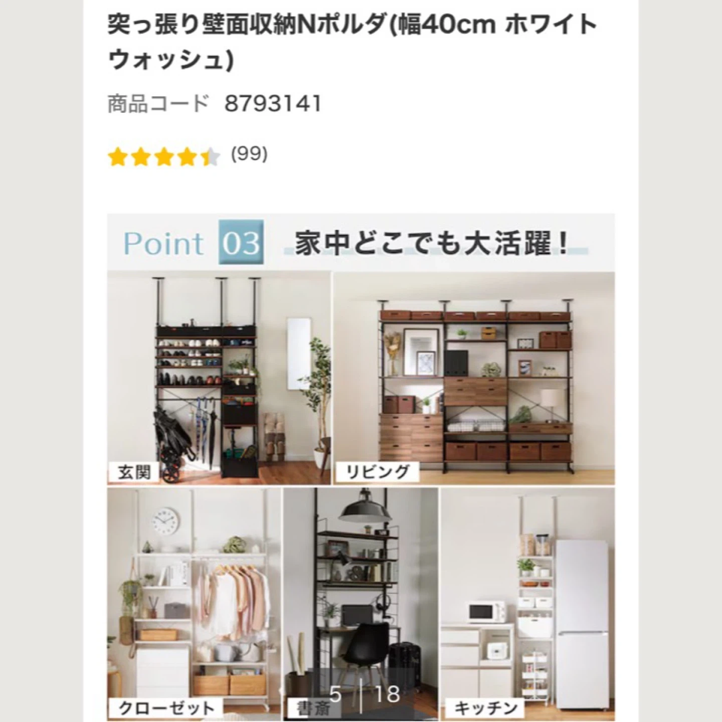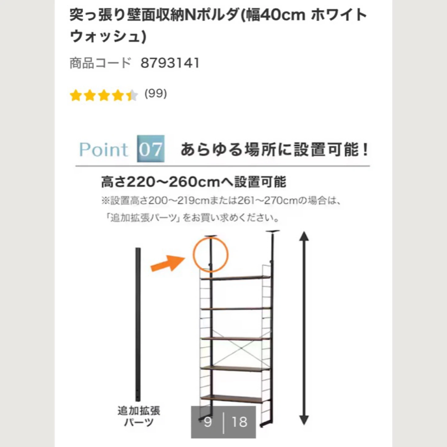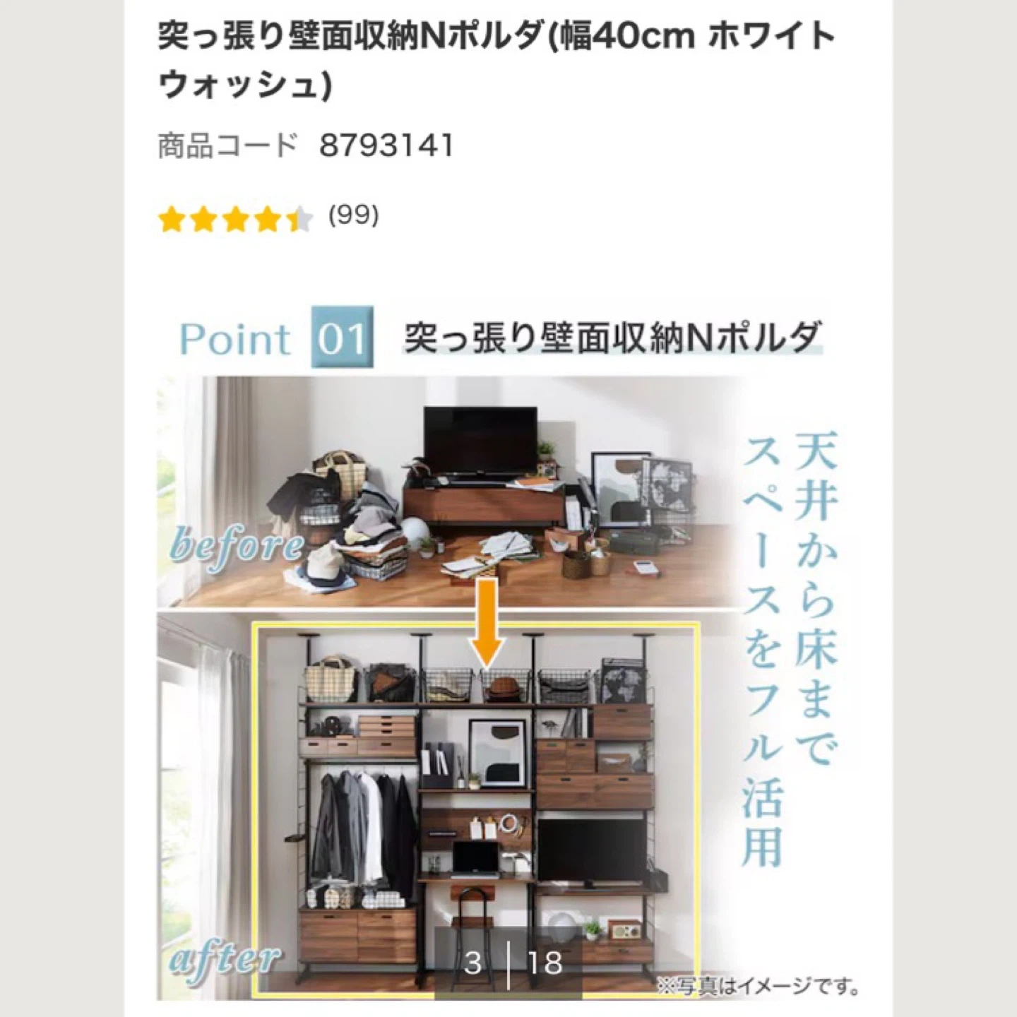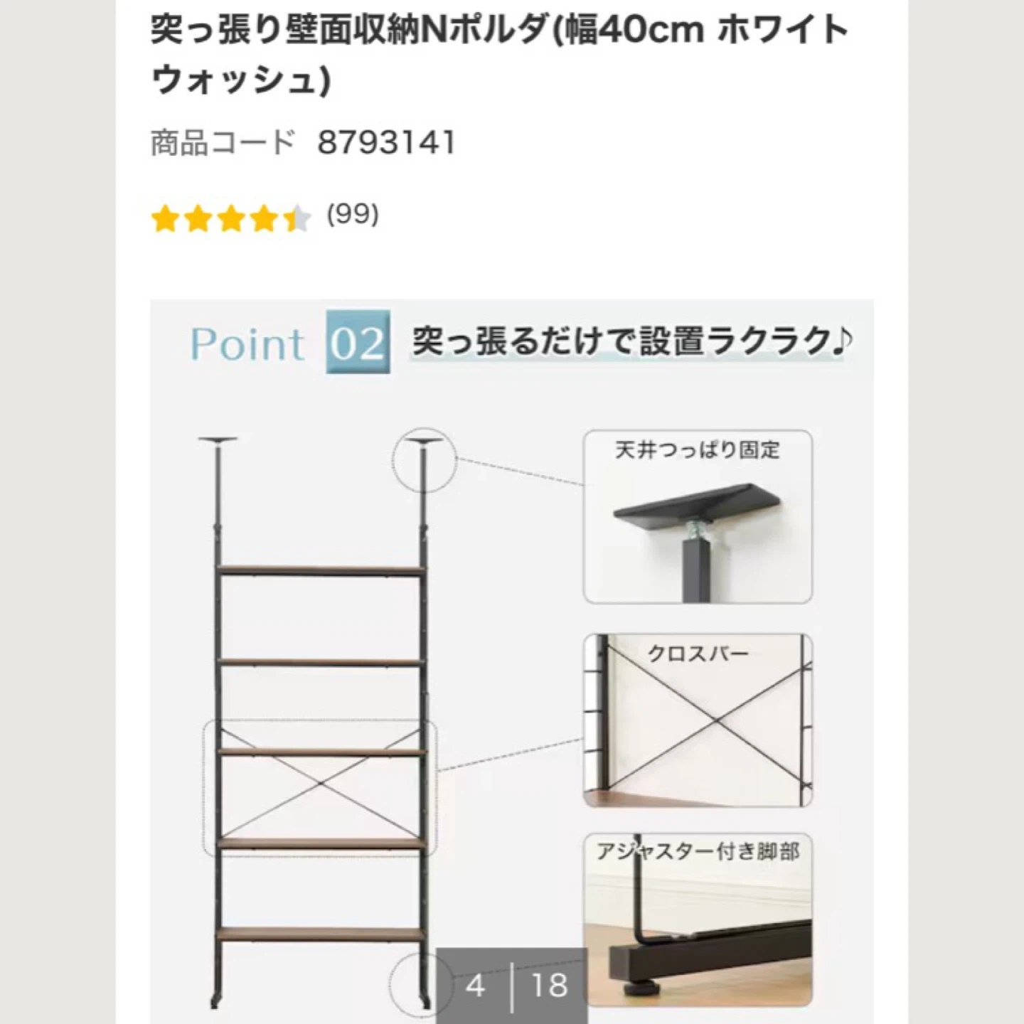 ニトリの突っ張り壁面収納Nポルダです 【情報】 ブランド:ニトリ 商品名:突っ張り壁面収納Nポルダ カラー:ホワイトウォッシュ サイズ:幅60cm 【状態】 未開封新品 定価9990円 4月下旬にオンラインストアで購入しました ★幅40cm/幅60cmを同時出品中です どうぞ合わせてご検討くださいませ ○喫煙者は居りません ○洗濯洗剤 : 無香料 (ハイブリッドJOE、無印良品おしゃれ着用洗剤、過炭酸ナトリウム等のアルカリ剤) ○柔軟剤 : なし ※水に溶いたクエン酸 ○香り付けビーズ類 : なし ○消臭スプレー : なし ○ルームフレグランス/置き型消臭剤 : なし 疾病・障害のため、 駅改札内外を跨ぐ受け渡しや、屋外の指定場所へ出向くことは不可能です (荷物を持った状態では、電動車椅子で移動できません)。 拙宅の玄関先※へ受け取りにいらしてくださいませ。 ※お取引に合意後、メッセージからお送りするGoogleマップのリンクの場所です どうかよろしくお願いいたします。